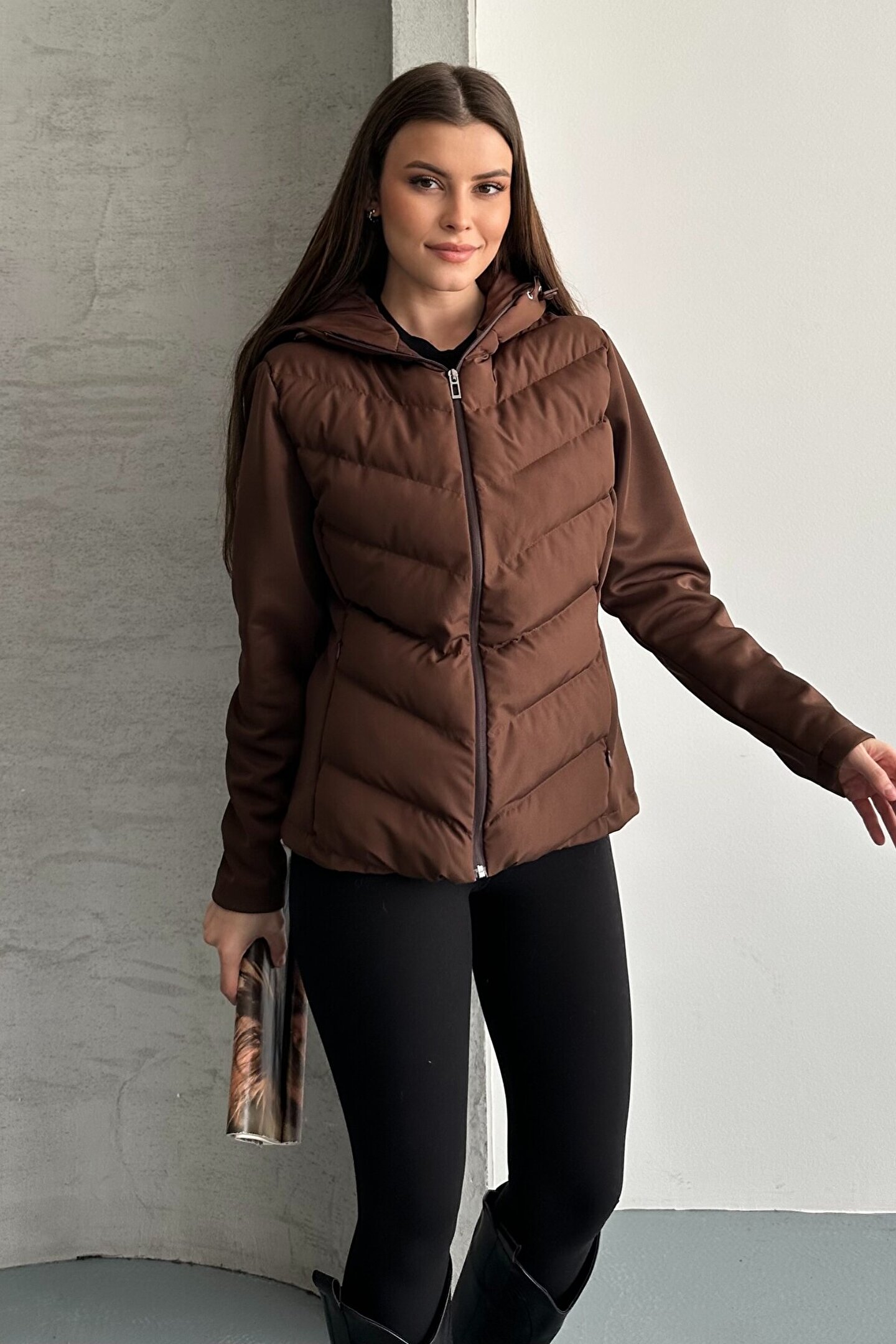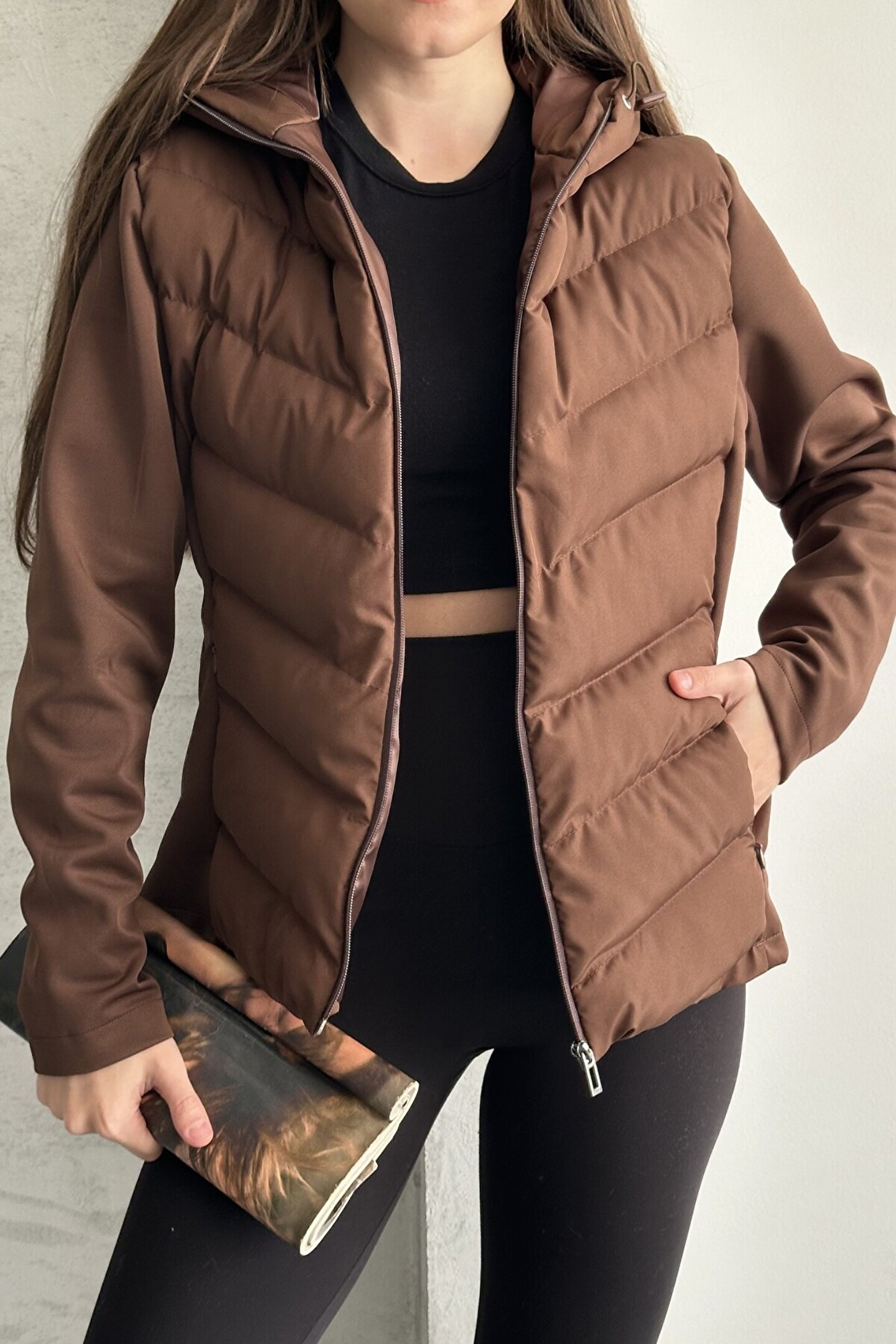 Kahverenginin asil tonu, şehir stiline sofistike bir hava katarken, kapüşonlu ve fermuarlı yapısı fonksiyonel kullanım sunar.