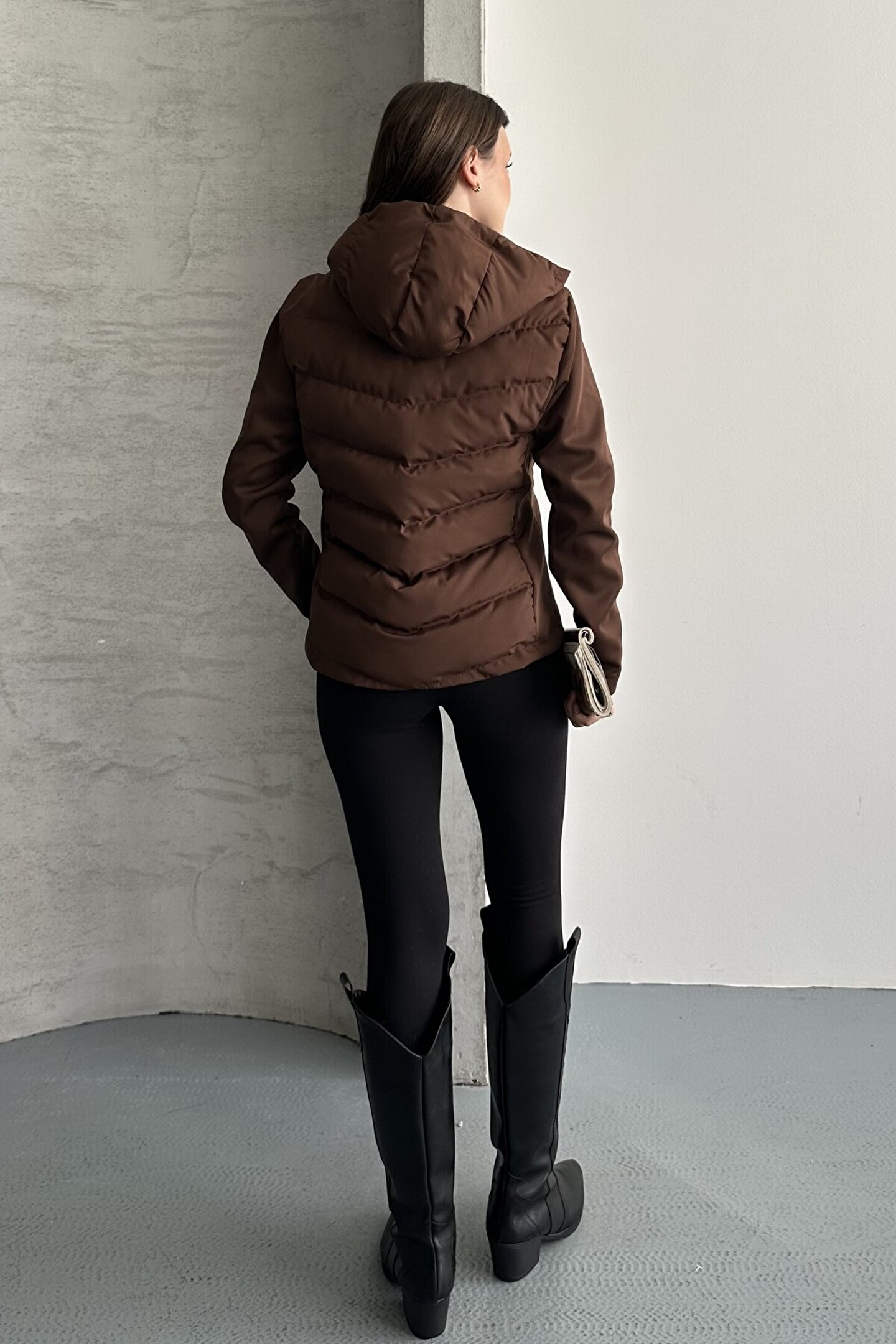 Kahverenginin asil tonu, şehir stiline sofistike bir hava katarken, kapüşonlu ve fermuarlı yapısı fonksiyonel kullanım sunar.