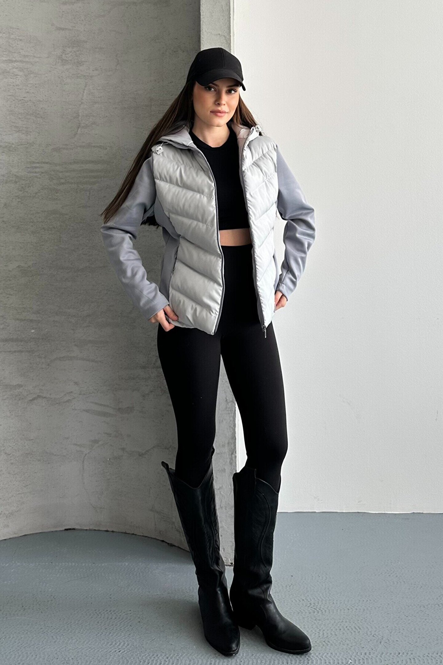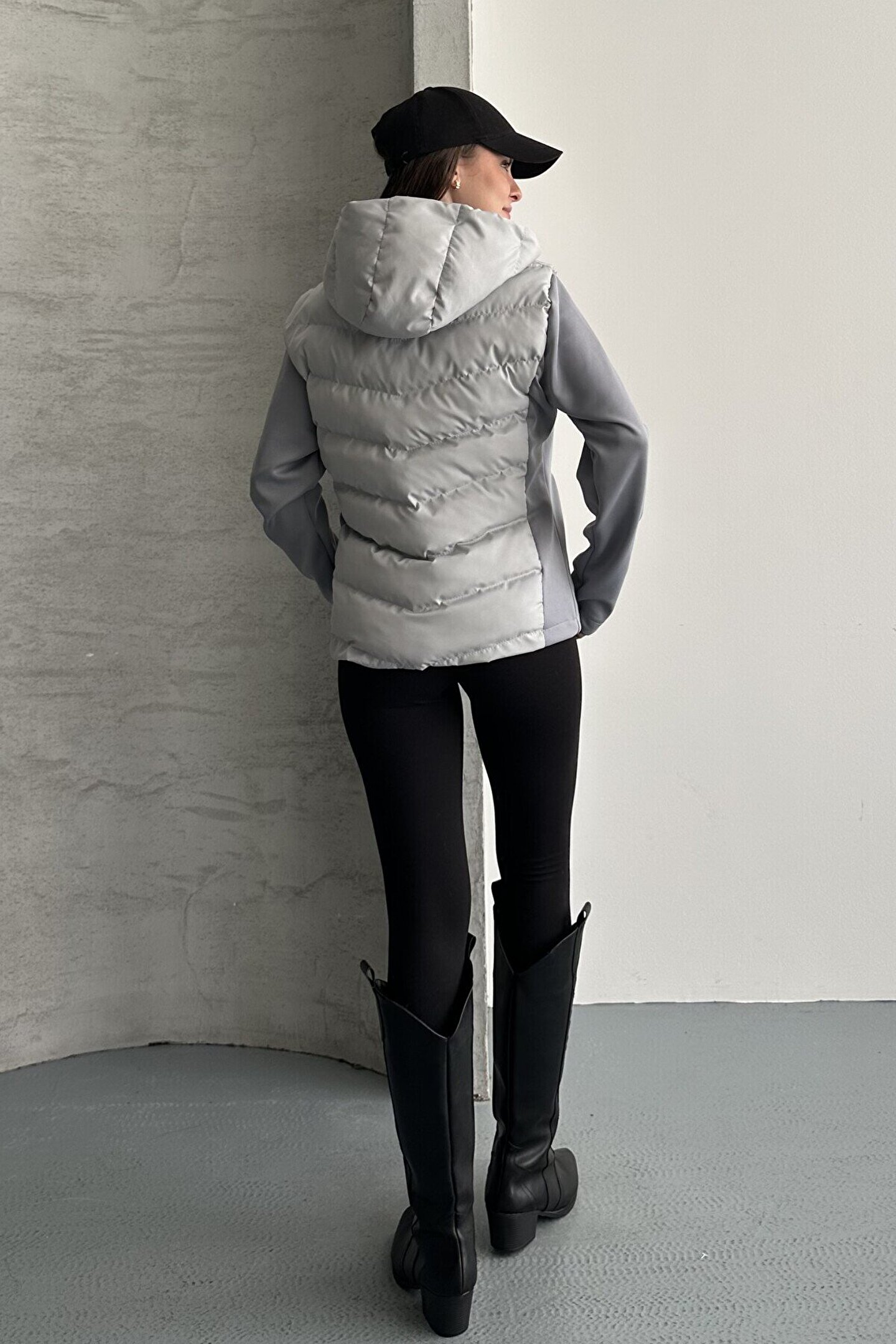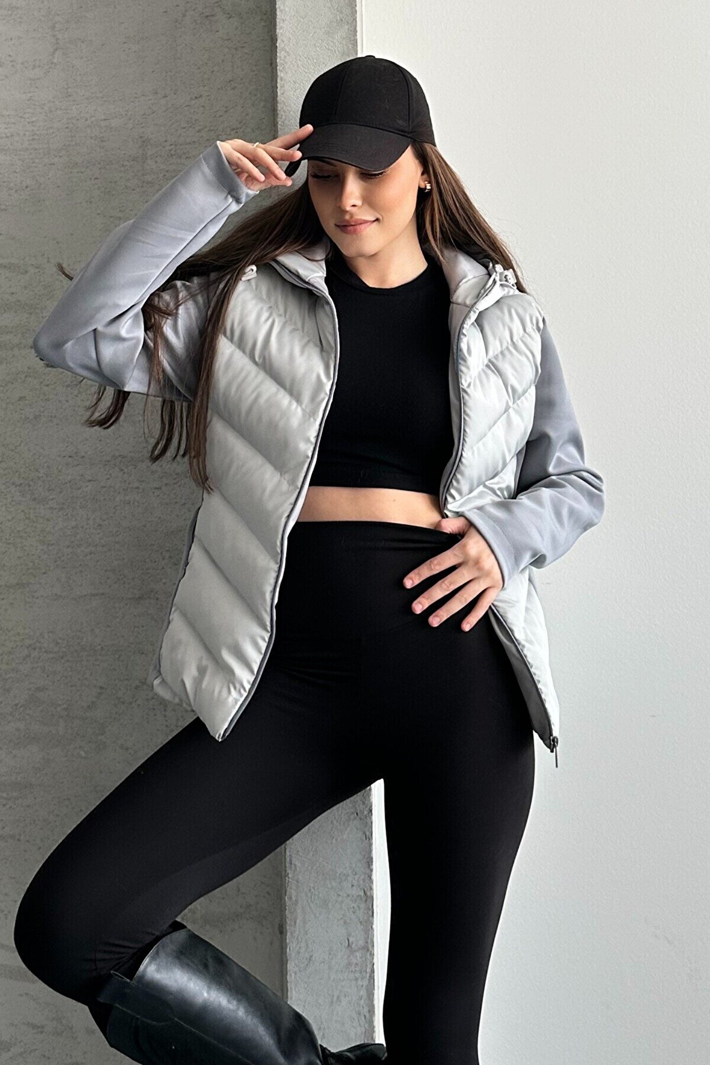 • Kadın gri kapüşonlu şişme mont, minimal ve şehir stiline uyum sağlayan tasarımıyla sezonun en çok tercih edilen basic mont modelleri arasında yer alıyor.
