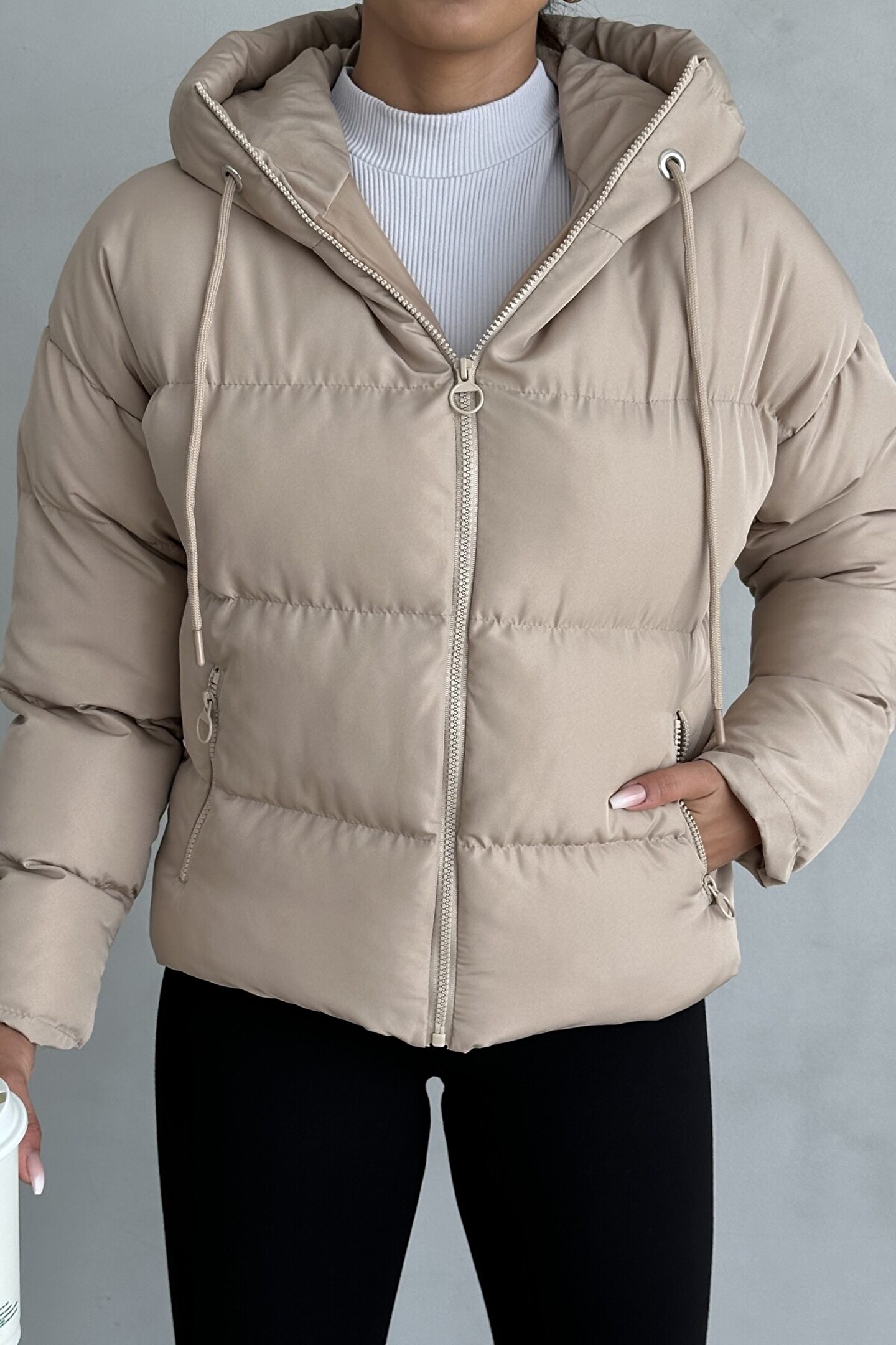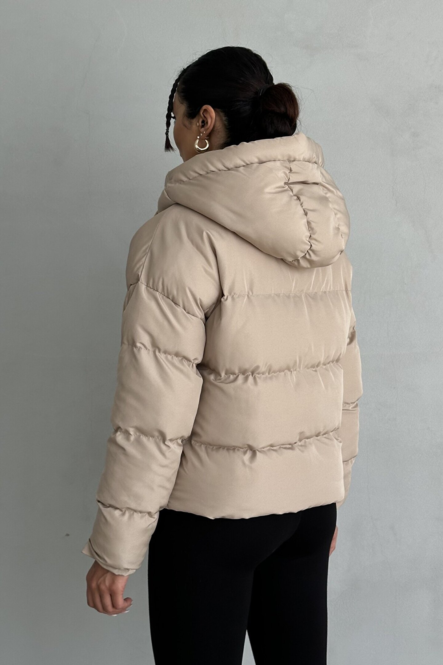 moda armanc Kadın Kapüşonlu Şişme Mont - Yakası Bağcıklı