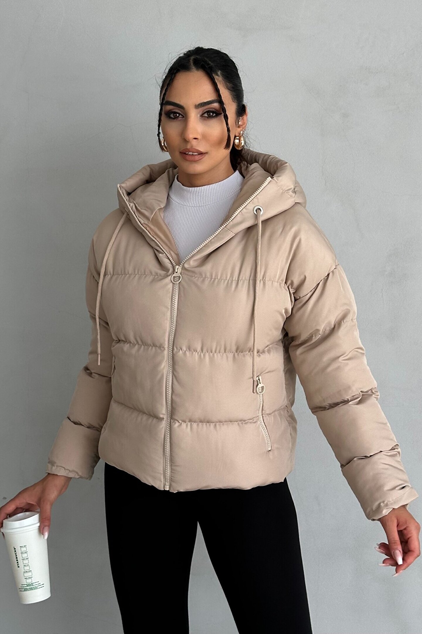 moda armanc Kadın Kapüşonlu Şişme Mont - Yakası Bağcıklı