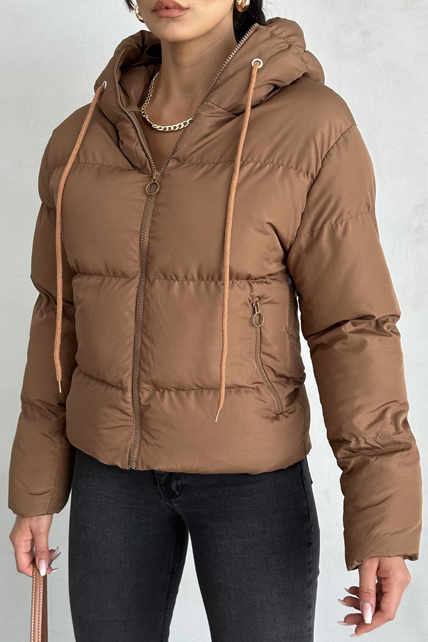 moda armanc Kadın Kapüşonlu Şişme Mont - Yakası Bağcıklı