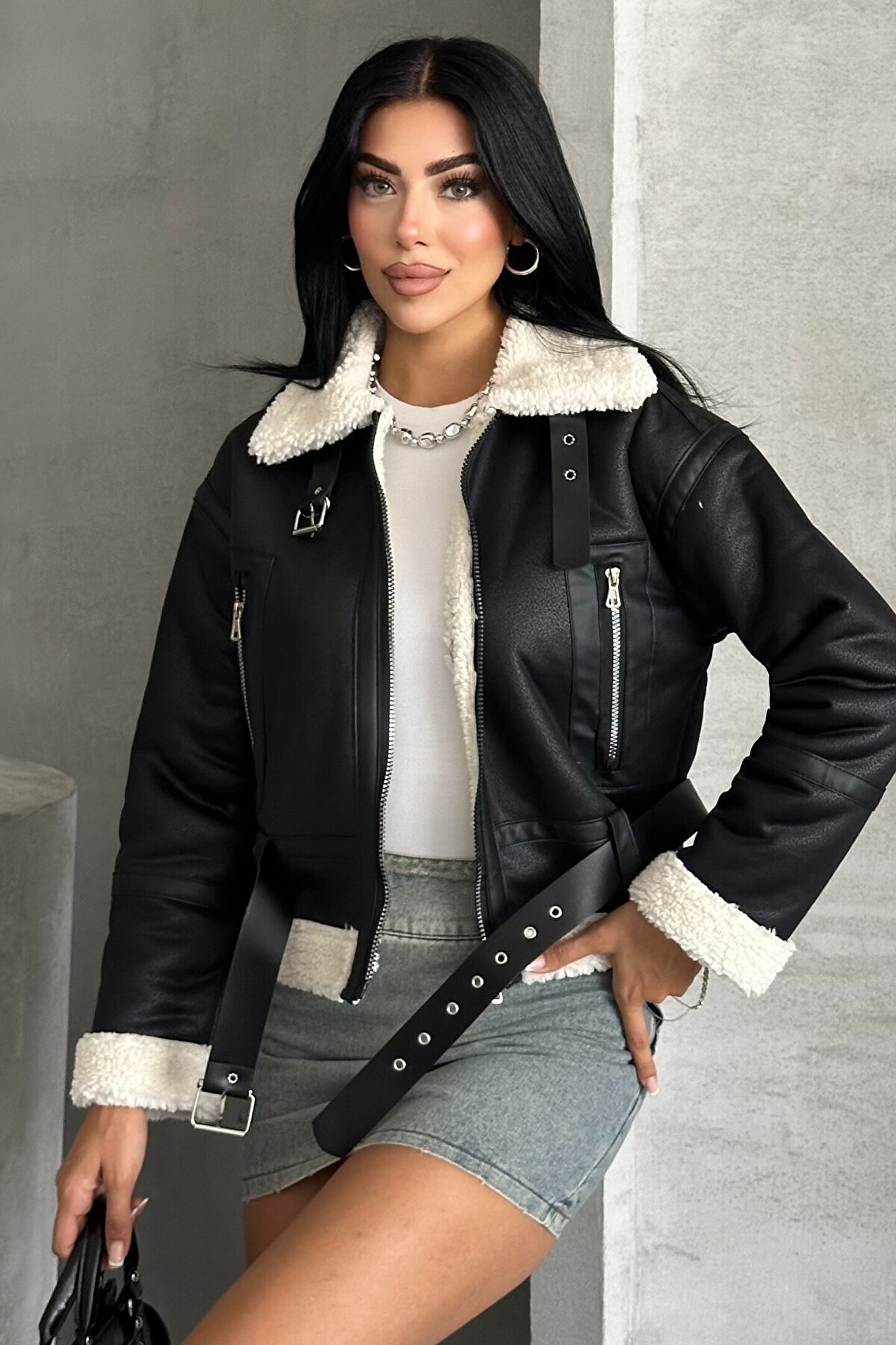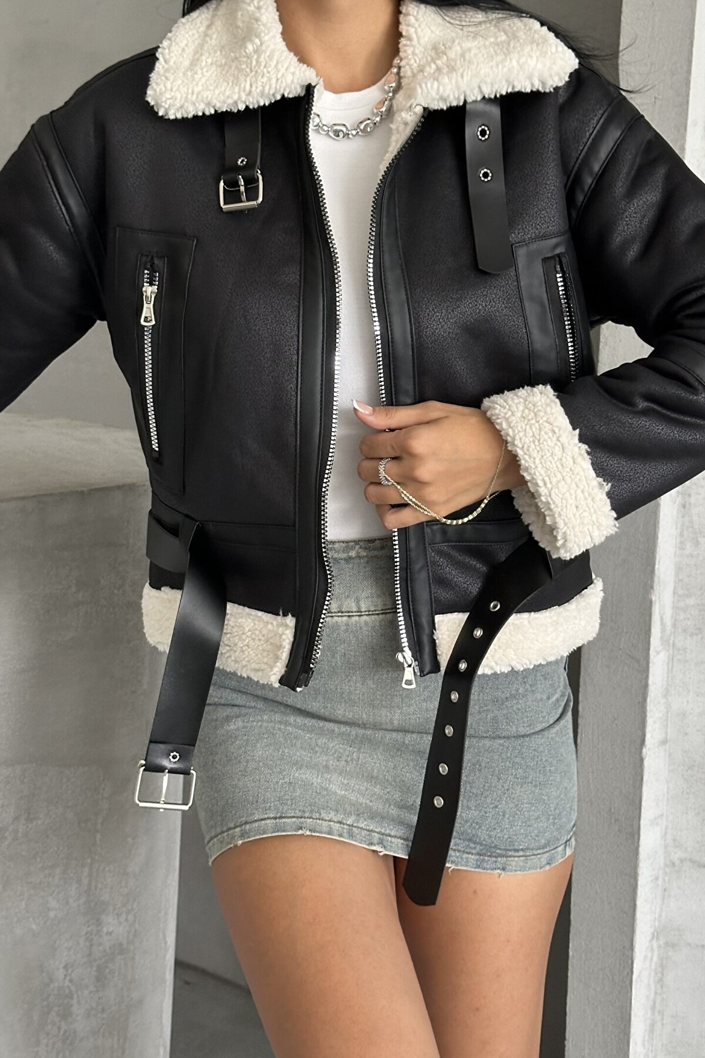 • Tarzınızı yansıtan, hem şık hem de sıcak tutan bir parça arıyorsanız bukadın siyah kemerli kürk detaylı deri monttam size göre!