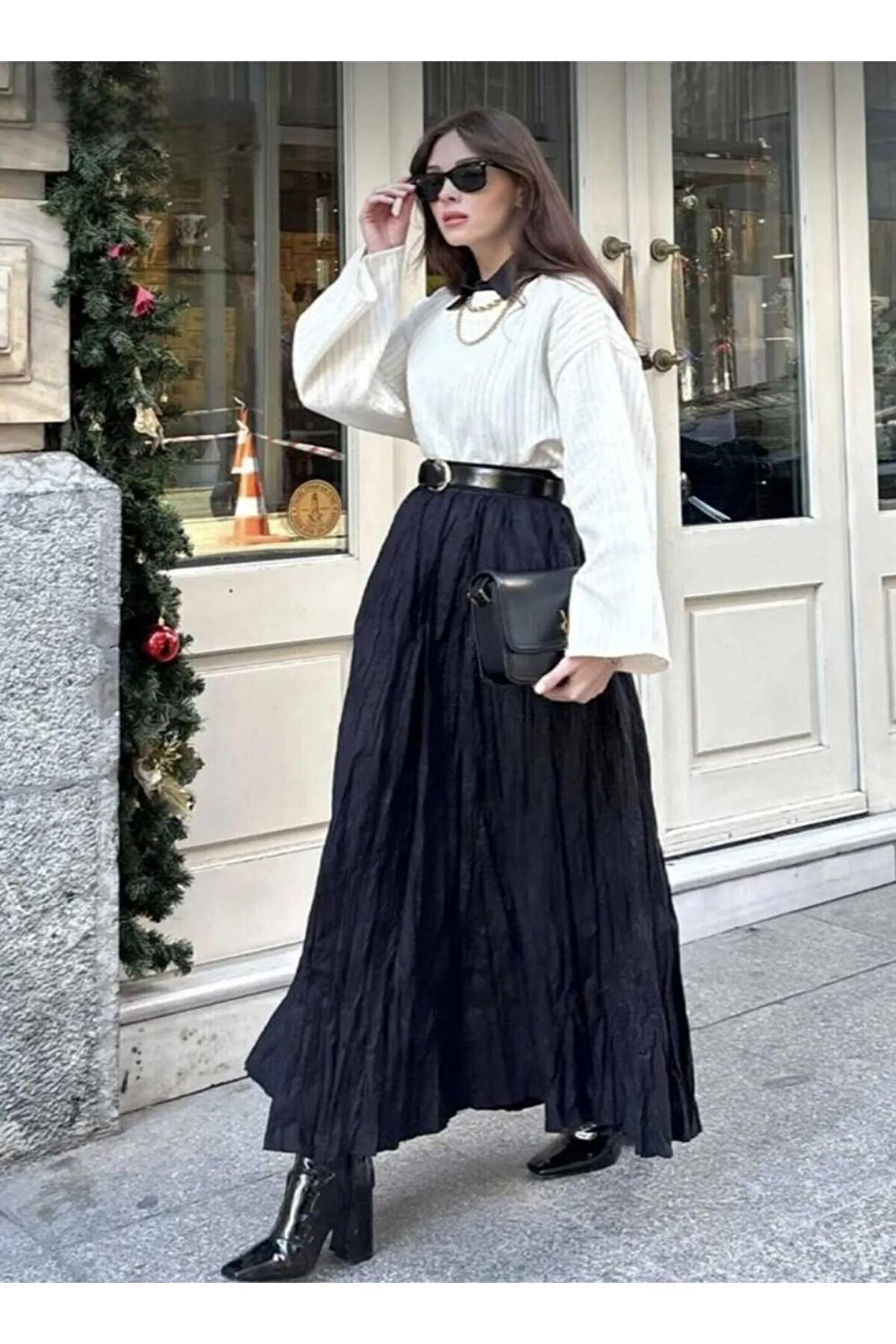 Kadın Kırışık Uzun Kloş Tesettür Etek