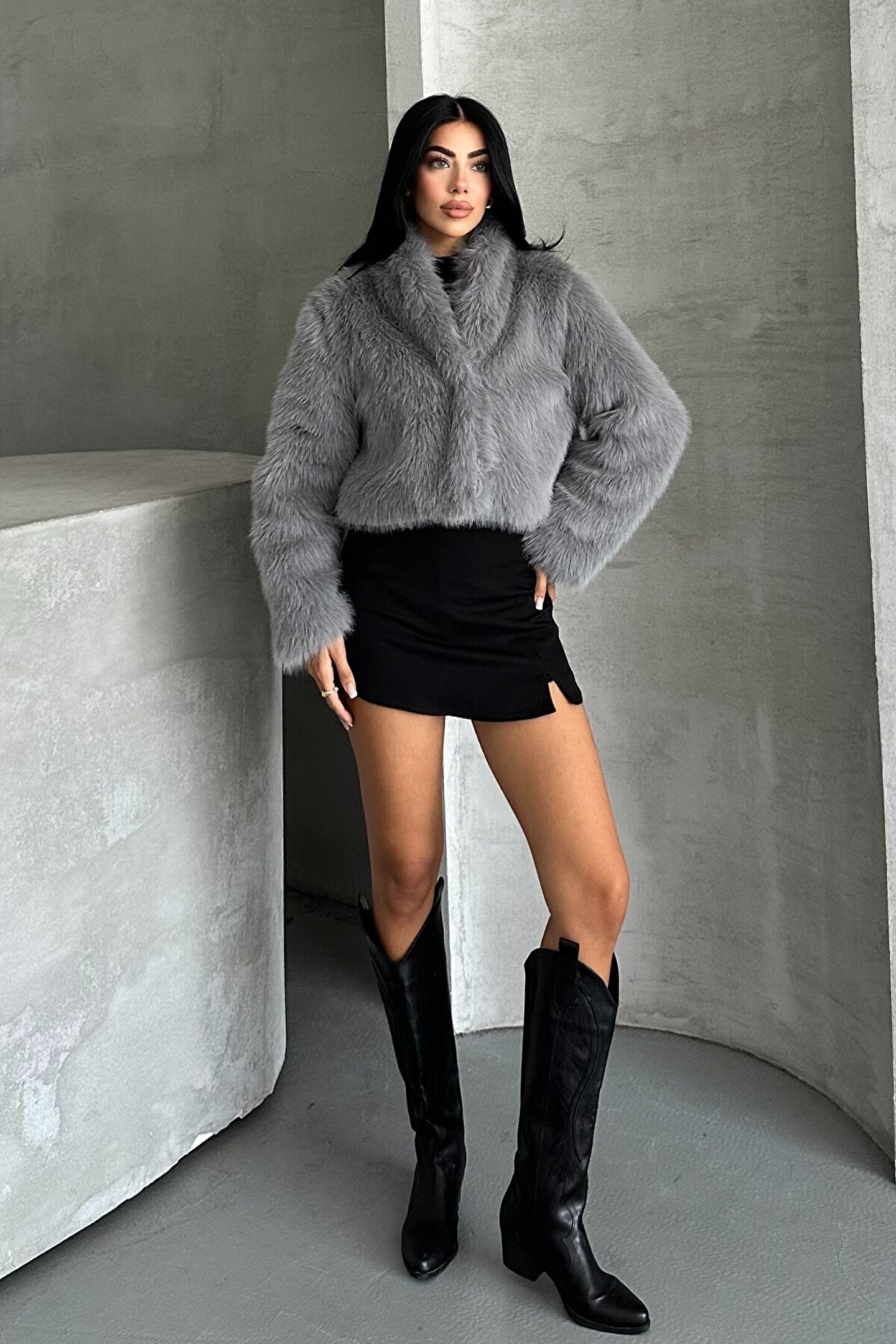 • Yeni sezonun trendlerinden olan bu kısa peluş kürk ceket ile soğuk havalarda hem sıcak kalın hem de iddialı kombinler yapın.