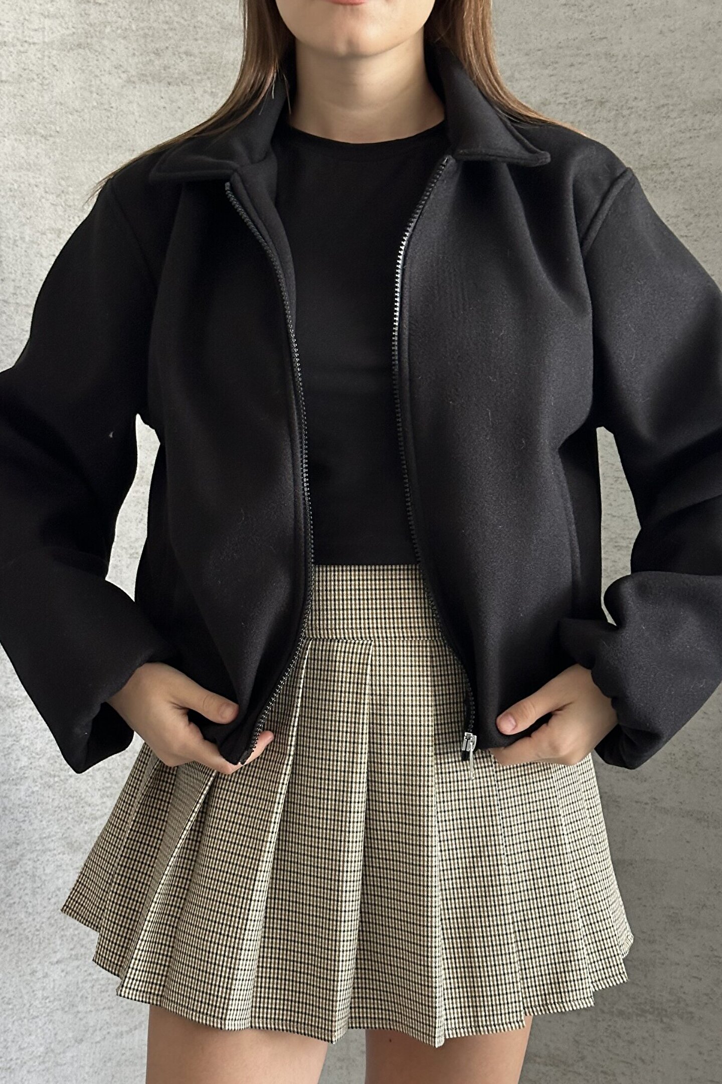 • Lastikli etek ucu: Vücuda oturan, bomber ceket görünümü.