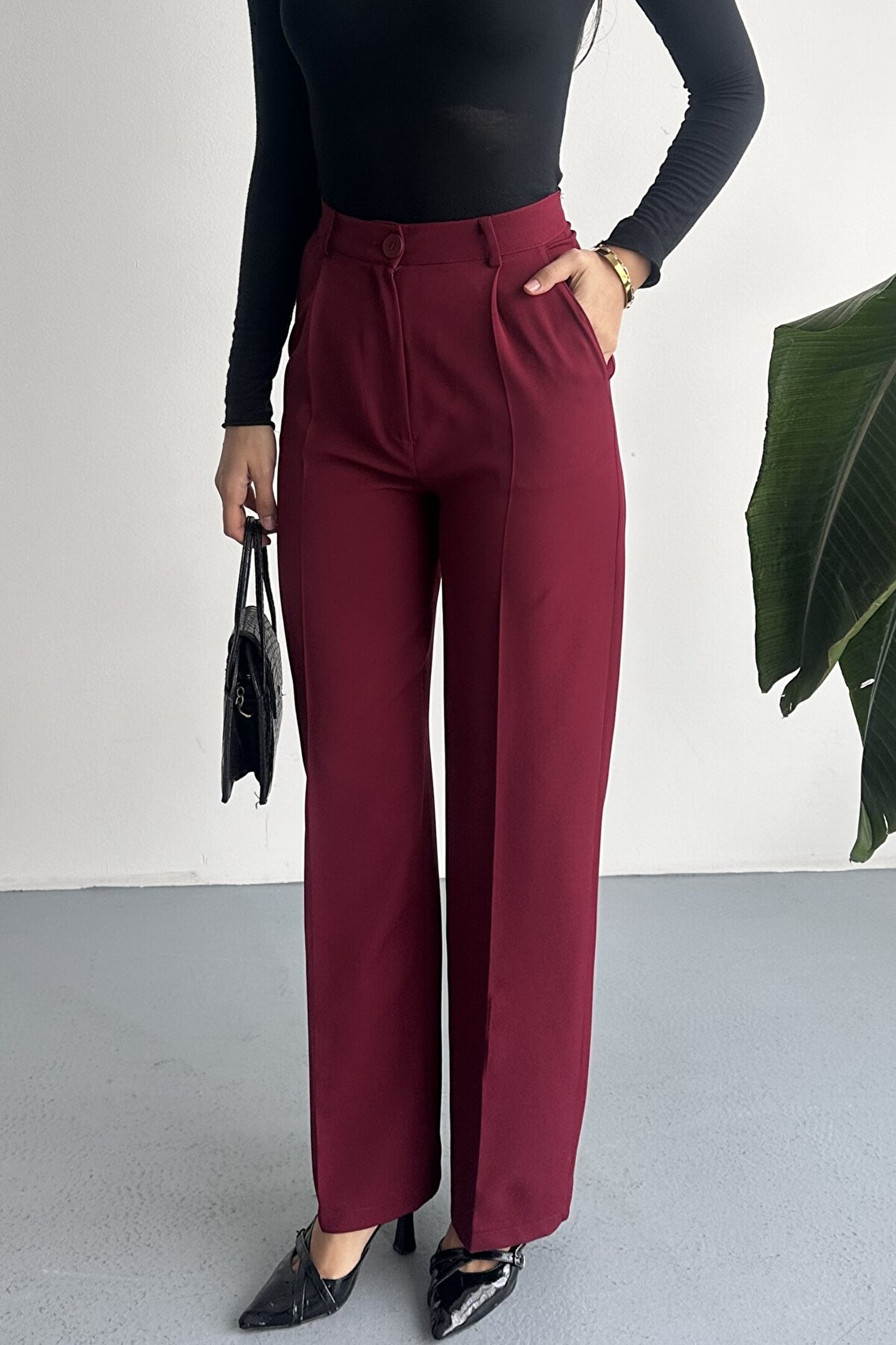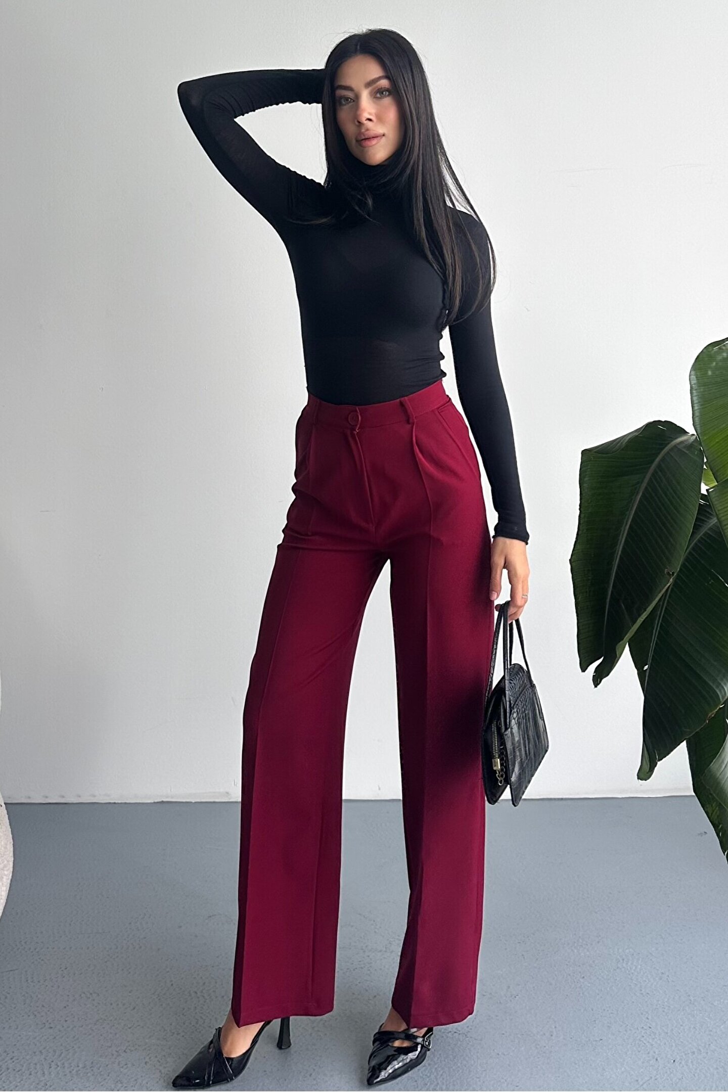 Kadın Palazzo Pantolon; Modern kesimi ve yüksek bel formuyla hem ofis hem günlük kombinlerin vazgeçilmez şık pantolon modeli.; ; Zamansız stil anlayışını modern kesimle buluşturan yüksek bel geniş paça kumaş pantolon, hem günlük kombinlerde hem ofis stilinde şık ve güçlü bir görünüm sunar.; ; Yüksek bel tasarımı vücut formunu dengelerken, akıcı ve düz paça kesimi bacak boyunu daha uzun ve zarif gösterir.; ; Minimal ve sade görünümü sayesinde farklı üst parçalarla kolayca kombinlenebilir.; ; Günlük kullanımda crop, basic tişört ve gömleklerle modern bir stil oluştururken, blazer ve topuklu ayakkabı ile klasik ofis şıklığına uyum sağlar.; ; Akıcı yapısı gün boyu konfor sunarken, güçlü silueti sayesinde stil sahibi ve modern bir duruş kazandırır.; ; Yüksek bel toparlayıcı form ; İspanyol paça modern kesim ; Akıcı ve rahat kumaş yapısı ; Günlük, ofis ve şehir stiline uygun ; Kolay kombinlenebilir zamansız tasarım ; Şık ve dengeli siluet görünümü ; Gardırobun en kurtarıcı parçalarından biri olacak bu model, hem klasik hem modern stil seven kadınlar için tasarlanmıştır.; ;