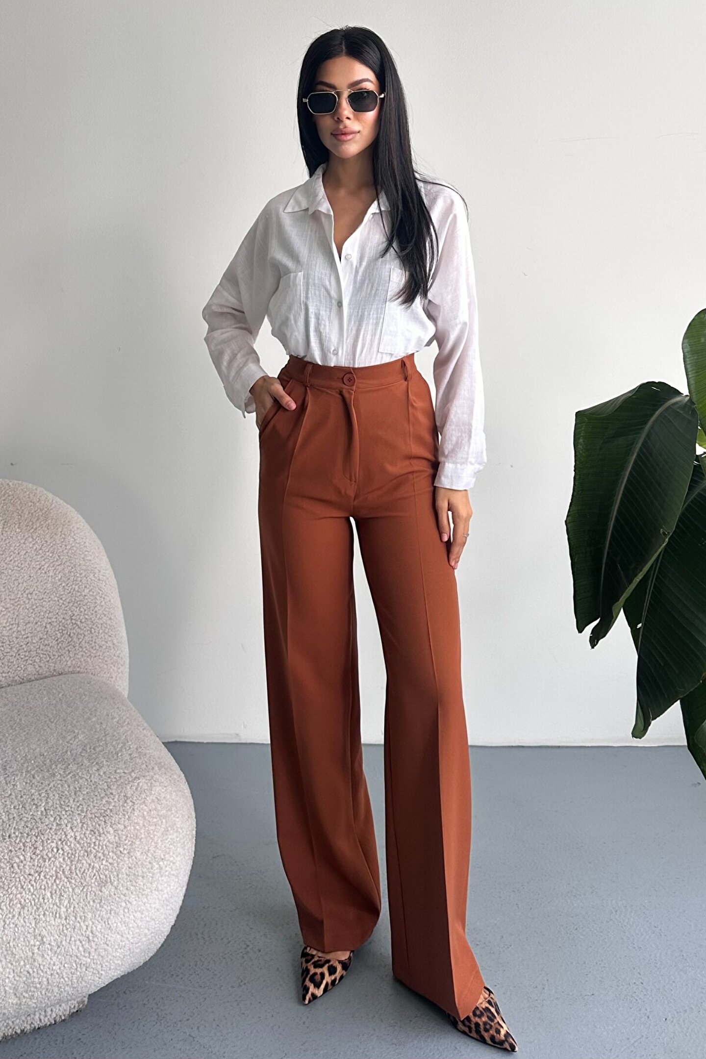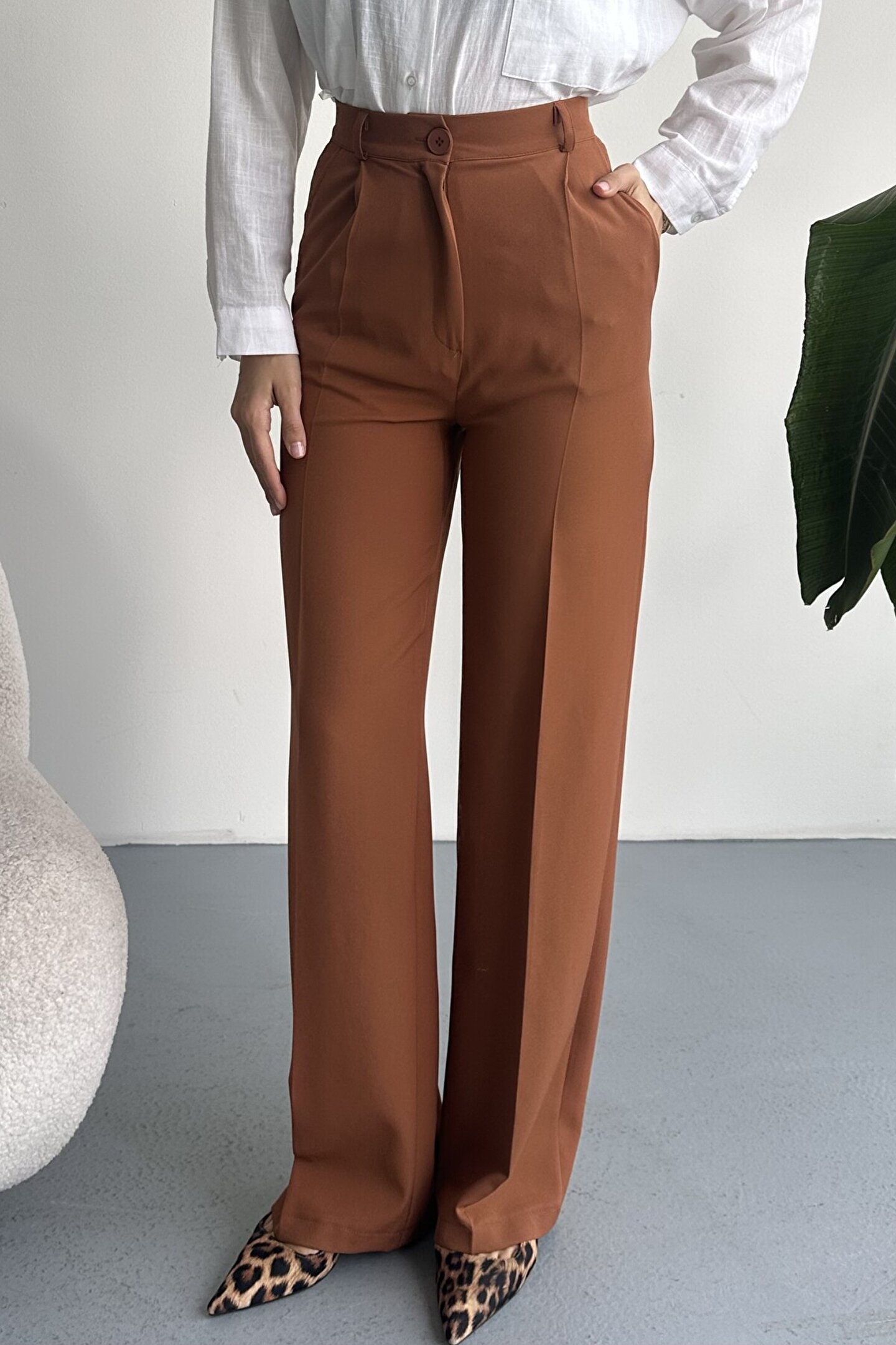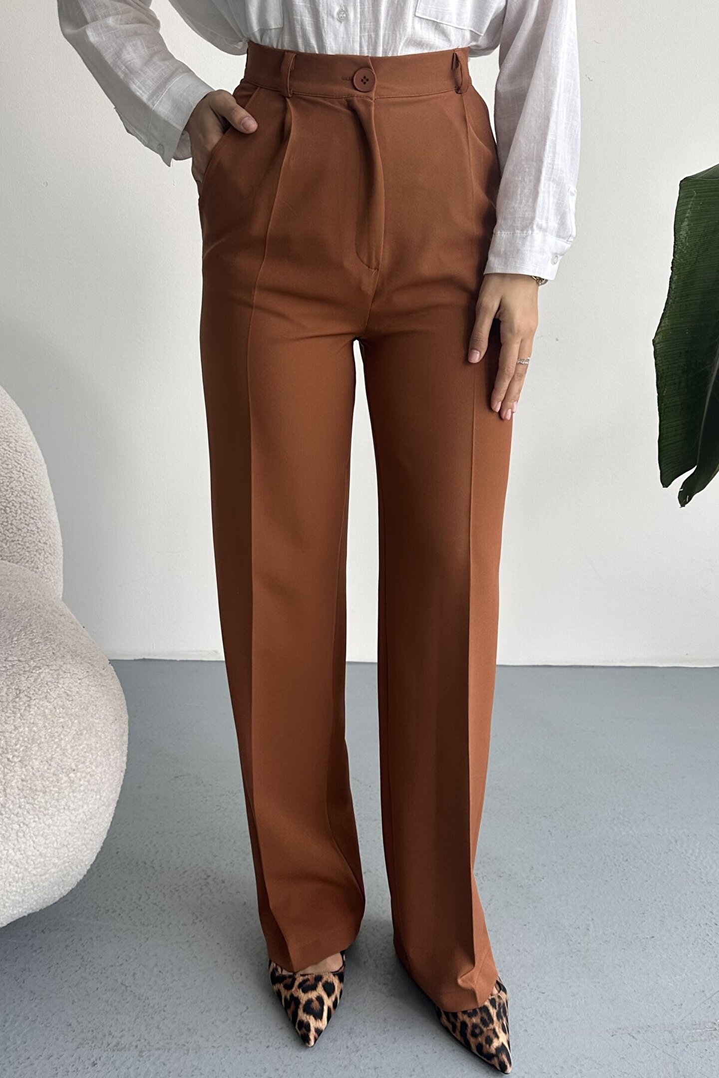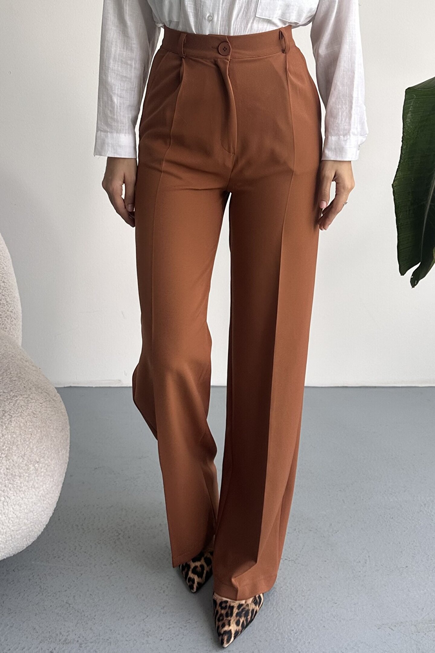 Kadın Palazzo Pantolon; Modern kesimi ve yüksek bel formuyla hem ofis hem günlük kombinlerin vazgeçilmez şık pantolon modeli.; ; Zamansız stil anlayışını modern kesimle buluşturan yüksek bel geniş paça kumaş pantolon, hem günlük kombinlerde hem ofis stilinde şık ve güçlü bir görünüm sunar.; ; Yüksek bel tasarımı vücut formunu dengelerken, akıcı ve düz paça kesimi bacak boyunu daha uzun ve zarif gösterir.; ; Minimal ve sade görünümü sayesinde farklı üst parçalarla kolayca kombinlenebilir.; ; Günlük kullanımda crop, basic tişört ve gömleklerle modern bir stil oluştururken, blazer ve topuklu ayakkabı ile klasik ofis şıklığına uyum sağlar.; ; Akıcı yapısı gün boyu konfor sunarken, güçlü silueti sayesinde stil sahibi ve modern bir duruş kazandırır.; ; Yüksek bel toparlayıcı form ; İspanyol paça modern kesim ; Akıcı ve rahat kumaş yapısı ; Günlük, ofis ve şehir stiline uygun ; Kolay kombinlenebilir zamansız tasarım ; Şık ve dengeli siluet görünümü ; Gardırobun en kurtarıcı parçalarından biri olacak bu model, hem klasik hem modern stil seven kadınlar için tasarlanmıştır.; ;