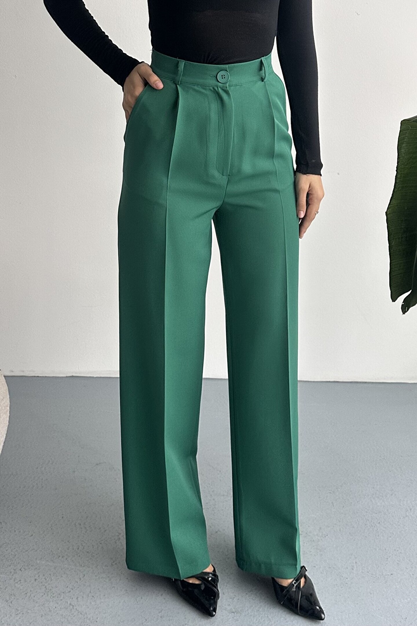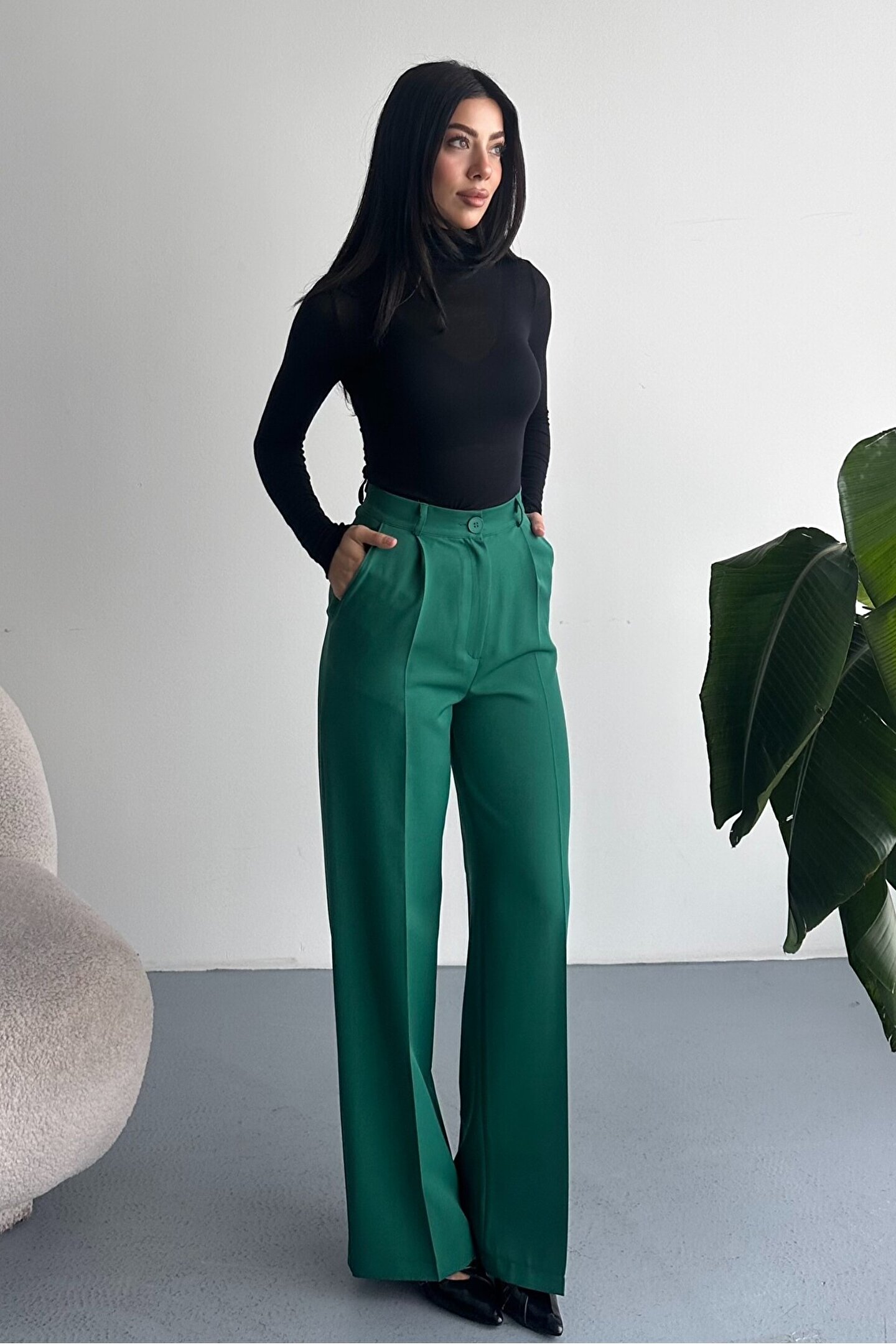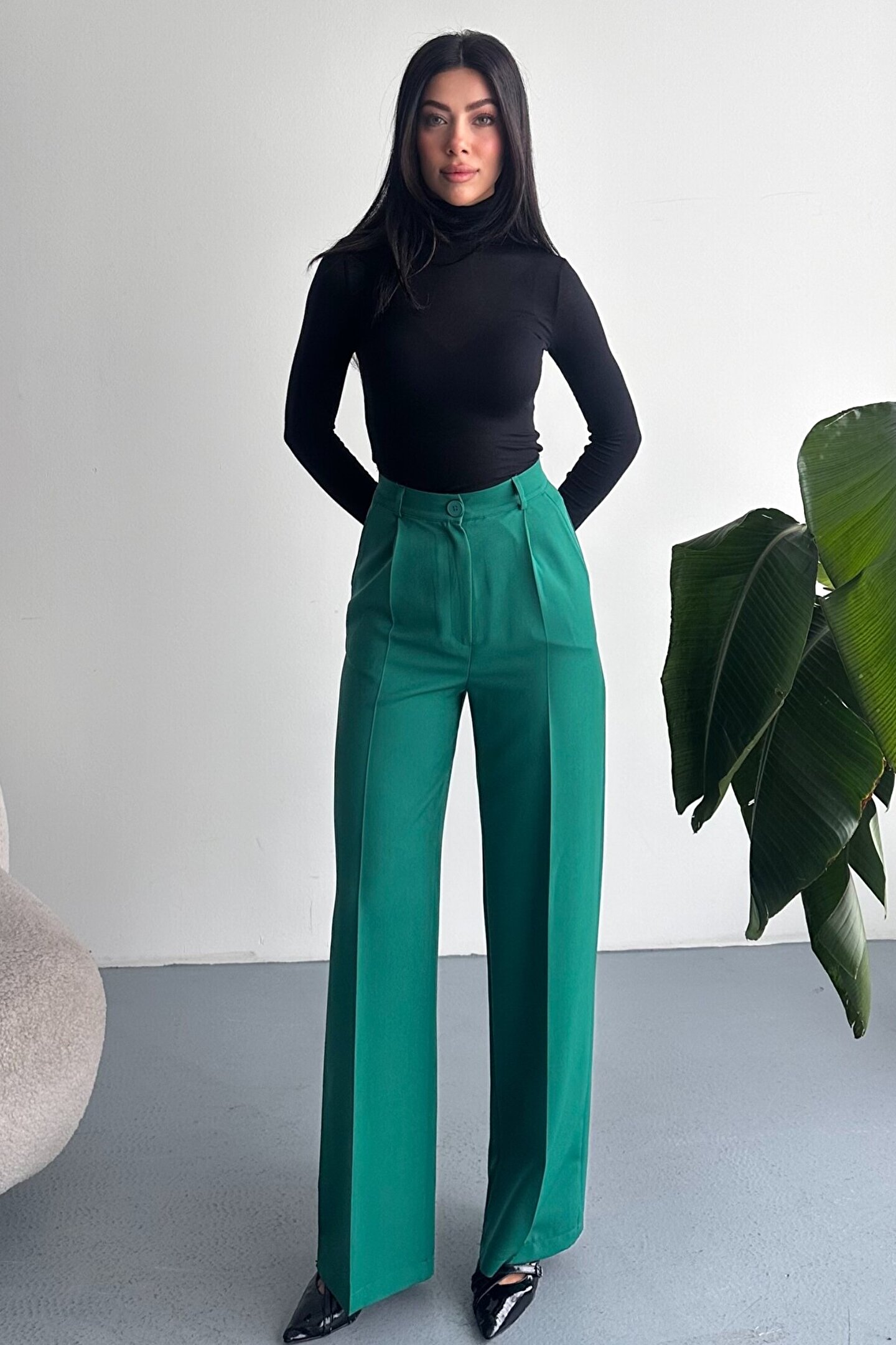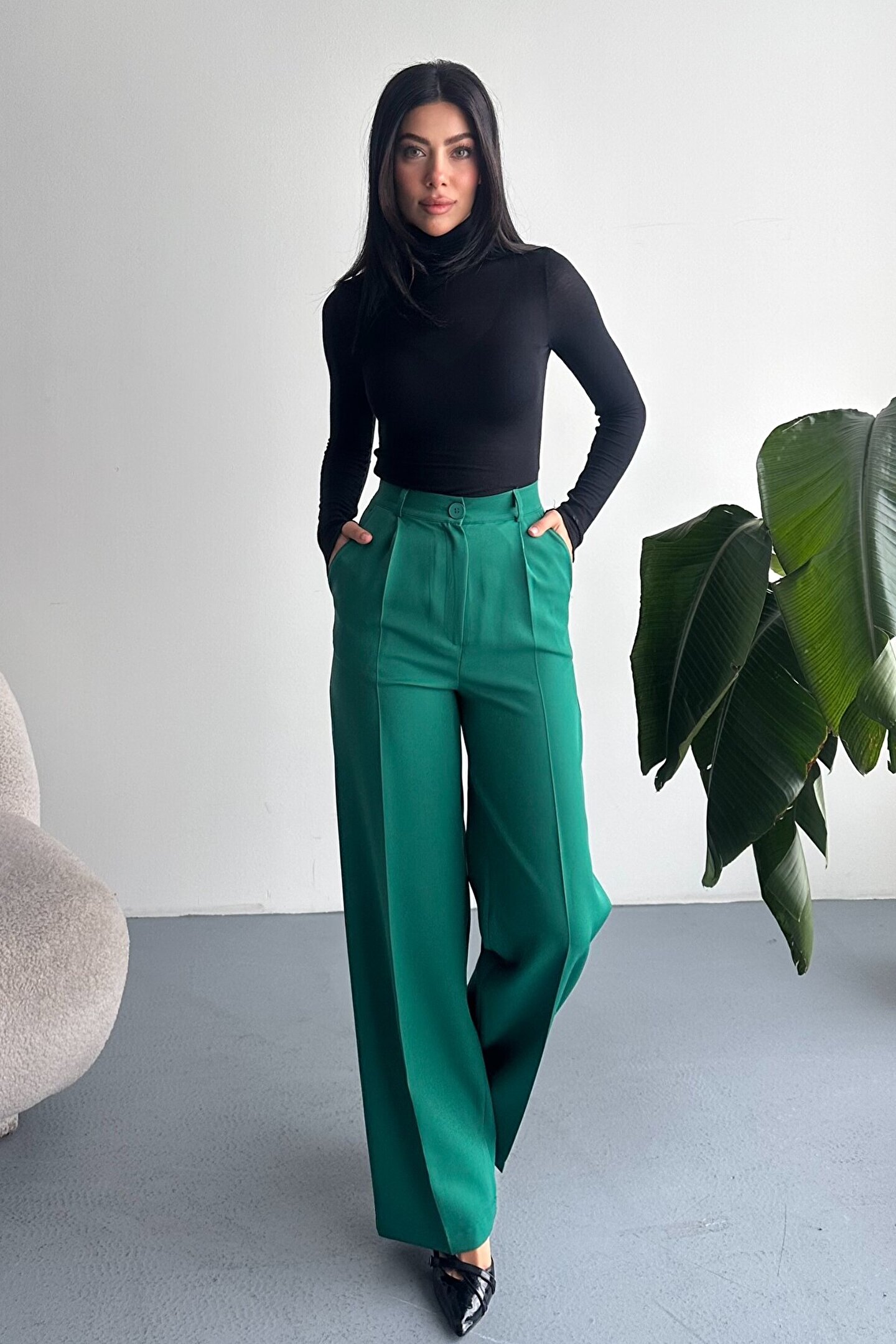 Kadın Palazzo Pantolon; Modern kesimi ve yüksek bel formuyla hem ofis hem günlük kombinlerin vazgeçilmez şık pantolon modeli.; ; Zamansız stil anlayışını modern kesimle buluşturan yüksek bel geniş paça kumaş pantolon, hem günlük kombinlerde hem ofis stilinde şık ve güçlü bir görünüm sunar.; ; Yüksek bel tasarımı vücut formunu dengelerken, akıcı ve düz paça kesimi bacak boyunu daha uzun ve zarif gösterir.; ; Minimal ve sade görünümü sayesinde farklı üst parçalarla kolayca kombinlenebilir.; ; Günlük kullanımda crop, basic tişört ve gömleklerle modern bir stil oluştururken, blazer ve topuklu ayakkabı ile klasik ofis şıklığına uyum sağlar.; ; Akıcı yapısı gün boyu konfor sunarken, güçlü silueti sayesinde stil sahibi ve modern bir duruş kazandırır.; ; Yüksek bel toparlayıcı form ; İspanyol paça modern kesim ; Akıcı ve rahat kumaş yapısı ; Günlük, ofis ve şehir stiline uygun ; Kolay kombinlenebilir zamansız tasarım ; Şık ve dengeli siluet görünümü ; Gardırobun en kurtarıcı parçalarından biri olacak bu model, hem klasik hem modern stil seven kadınlar için tasarlanmıştır.; ;