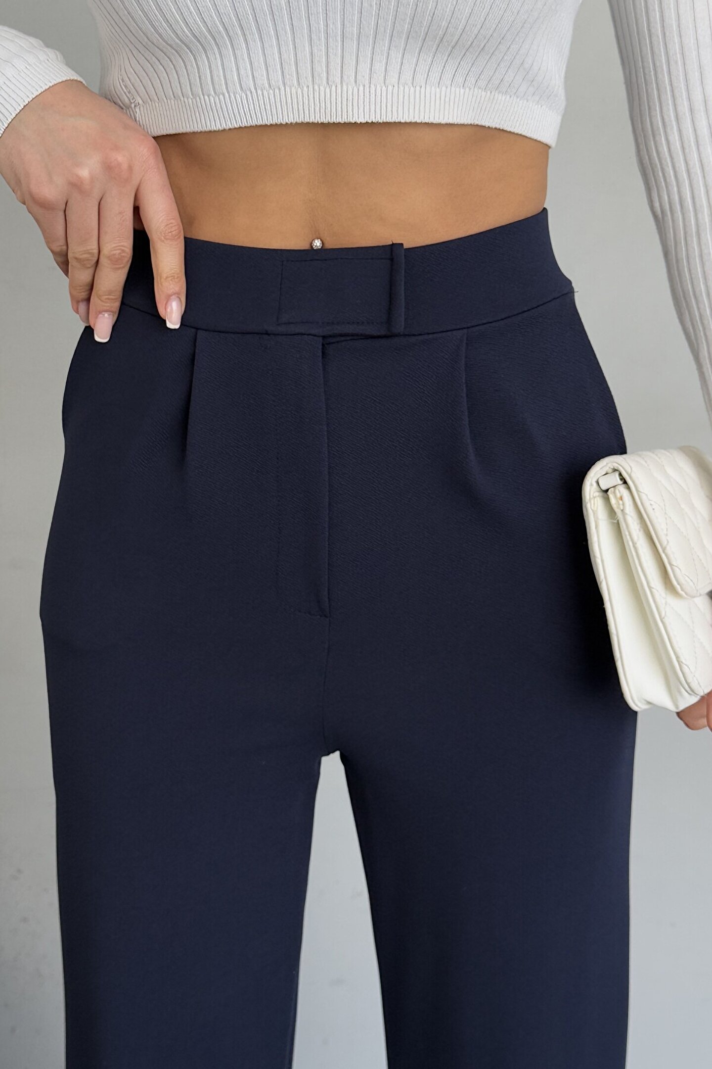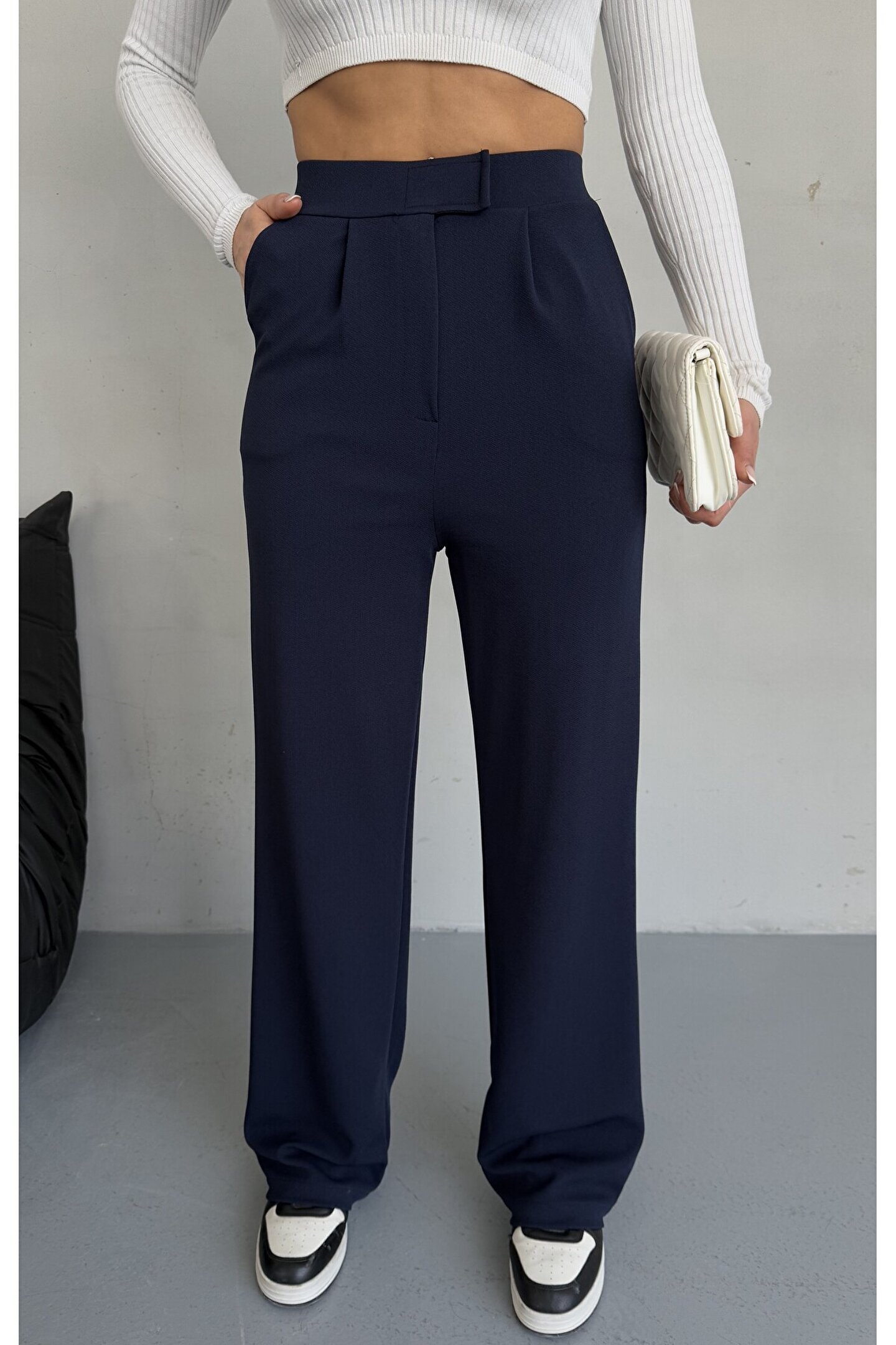 moda armanc Kadın Yüksek Bel Cırt Kapamalı Likralı Lacivert Palazzo Pantolon - Günlük Rahat Kalıp