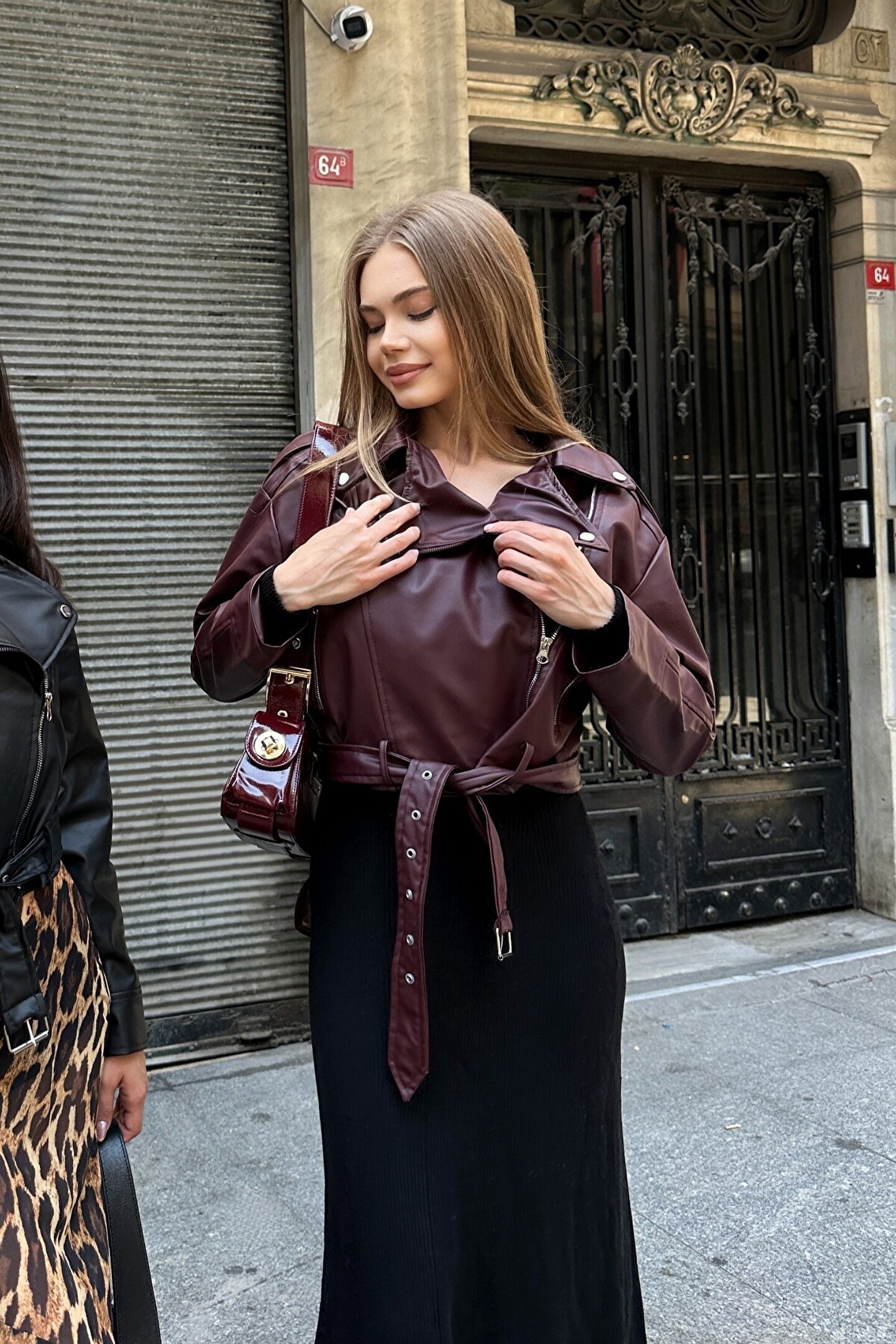 moda armanc Kemerli Oversize Crop Deri Ceket