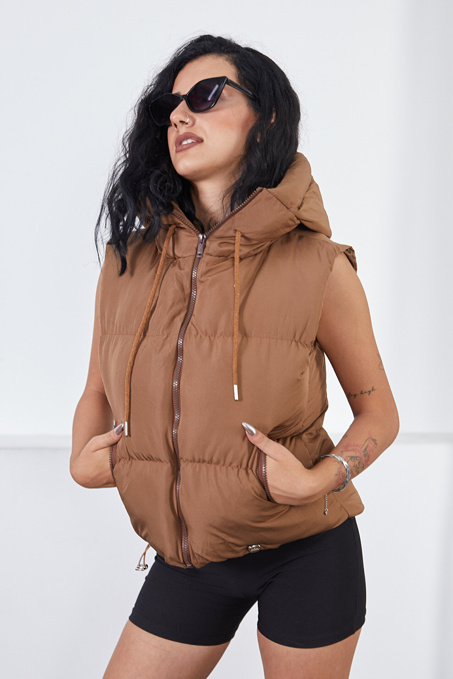 moda armanc Kısa Spor Kapüşonlu Şişme Yelek