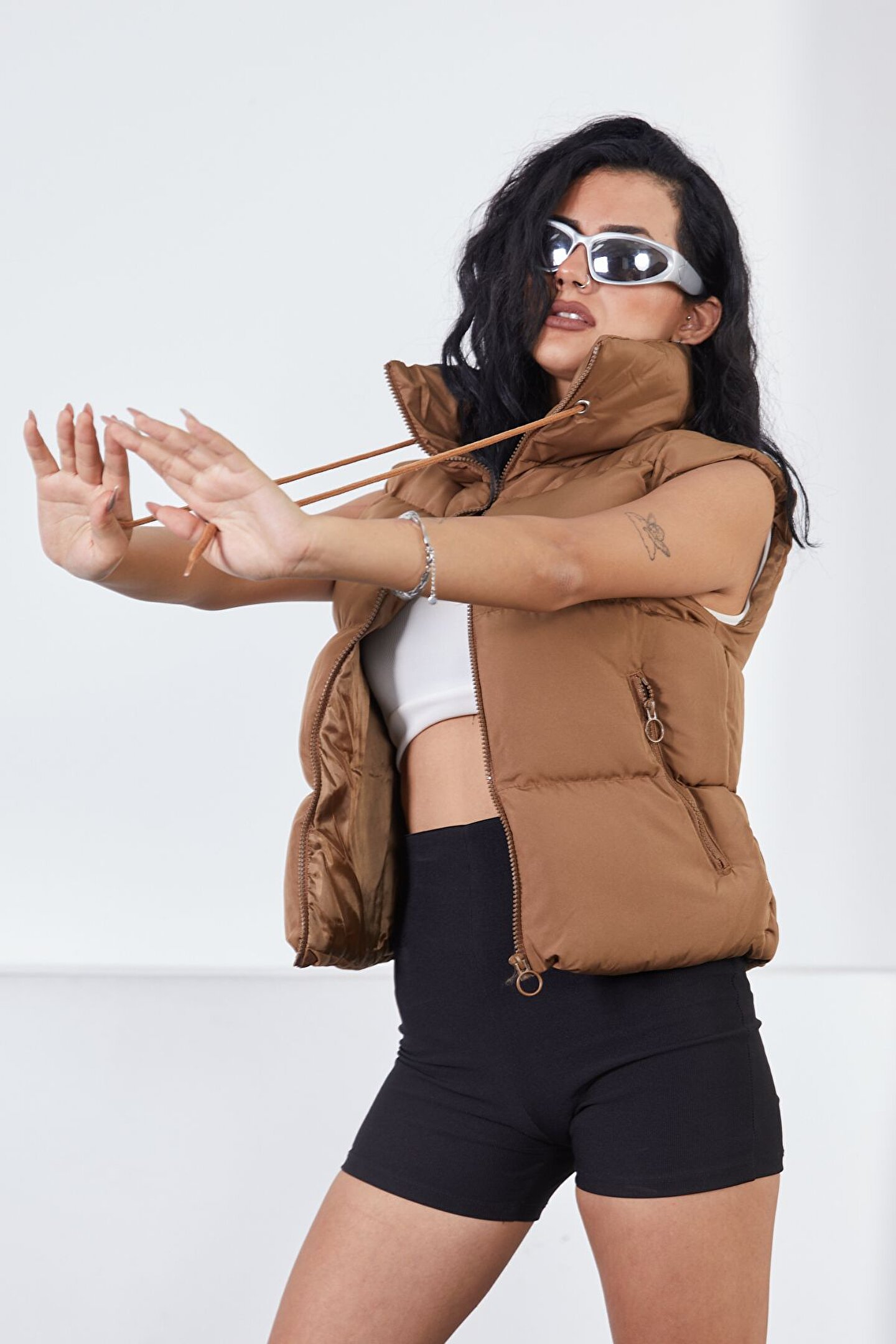 Kadın Kolsuz Fermuarlı Yelek - Kahve