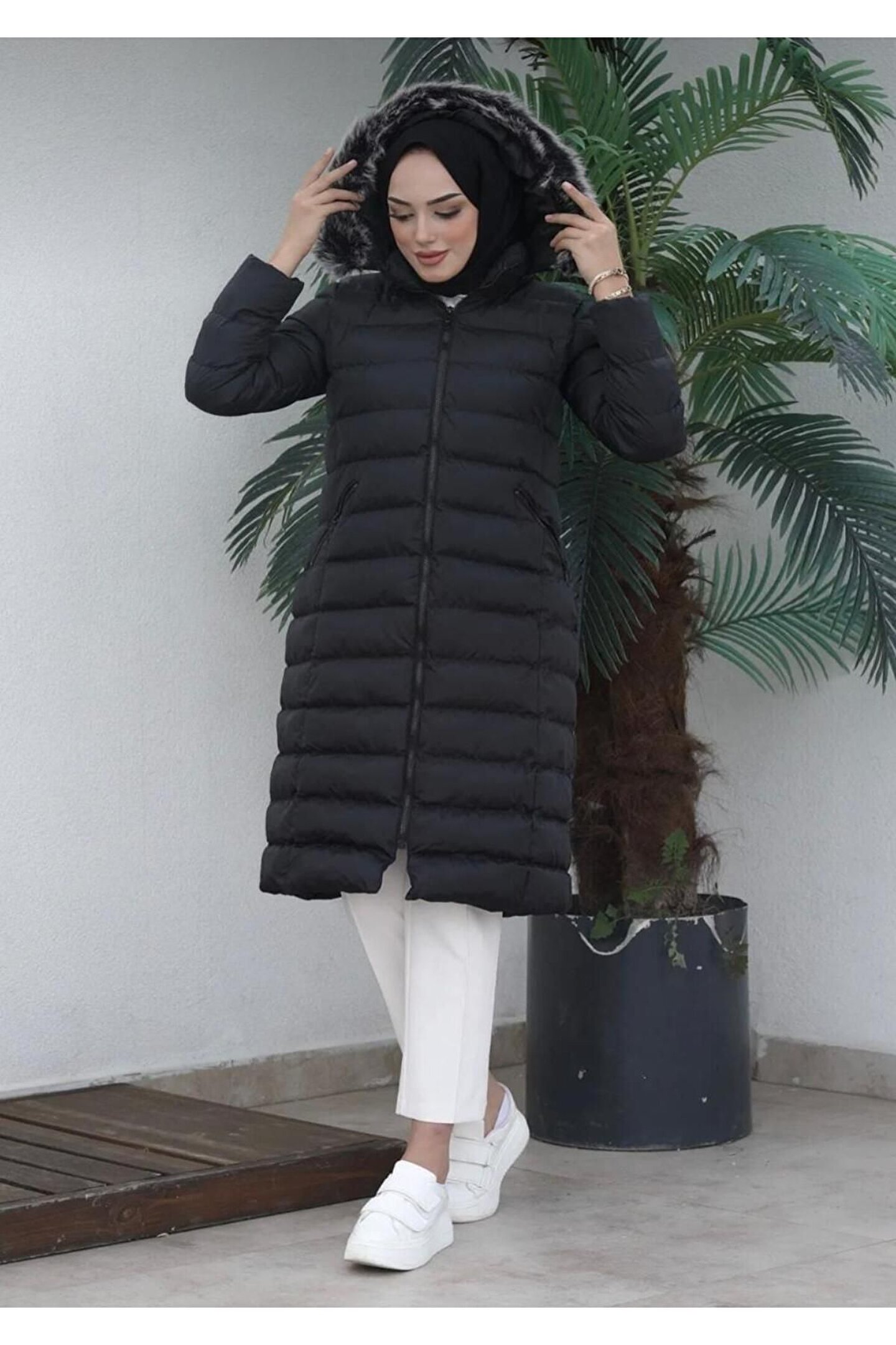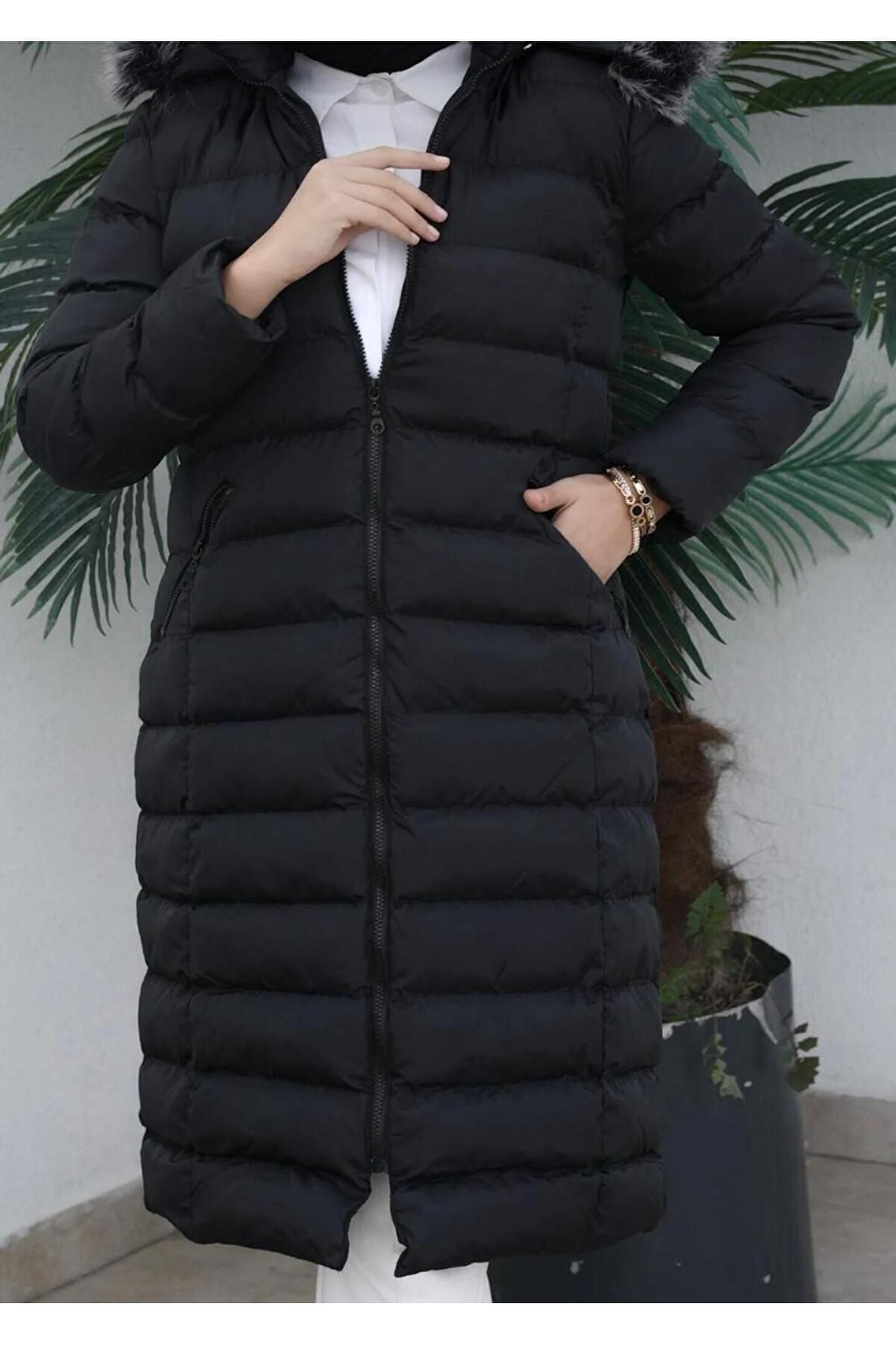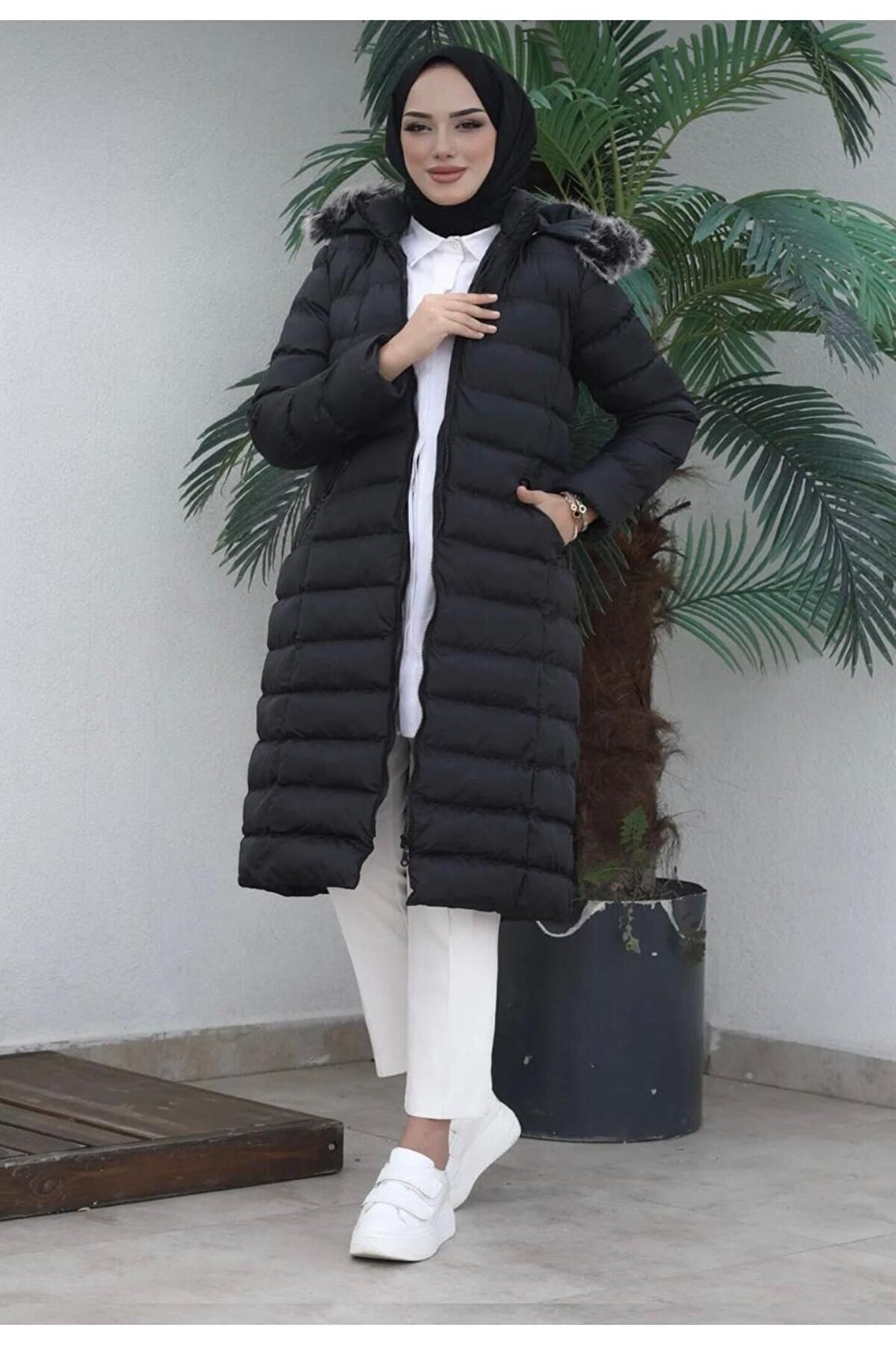 moda armanc Kürklü Yakalı Uzun Şişme Mont