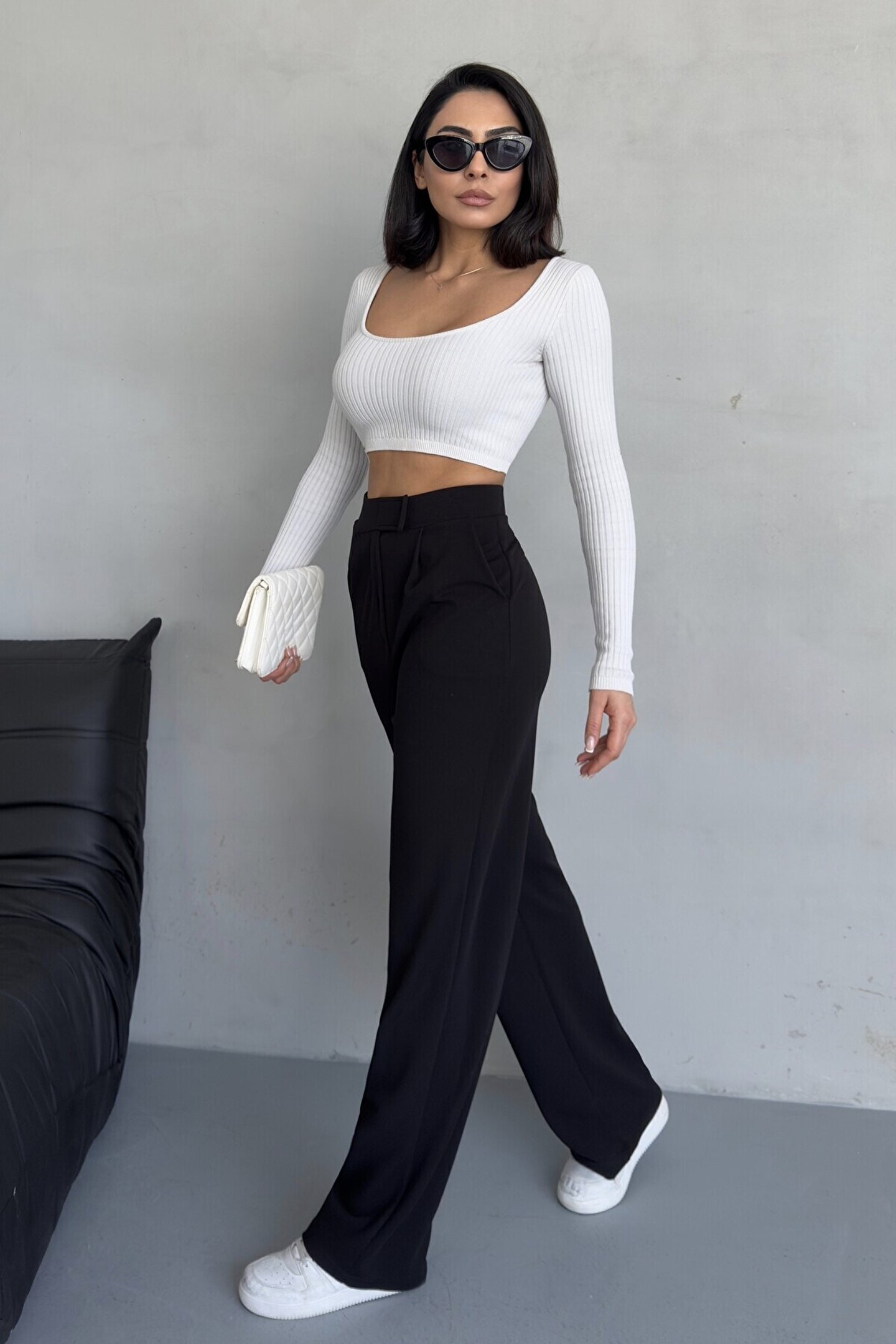 moda armanc Likralı Cırtlı Kadın Palazzo Pantolon – Cesur Tarz, Yüksek Bel, Rahat Kesim