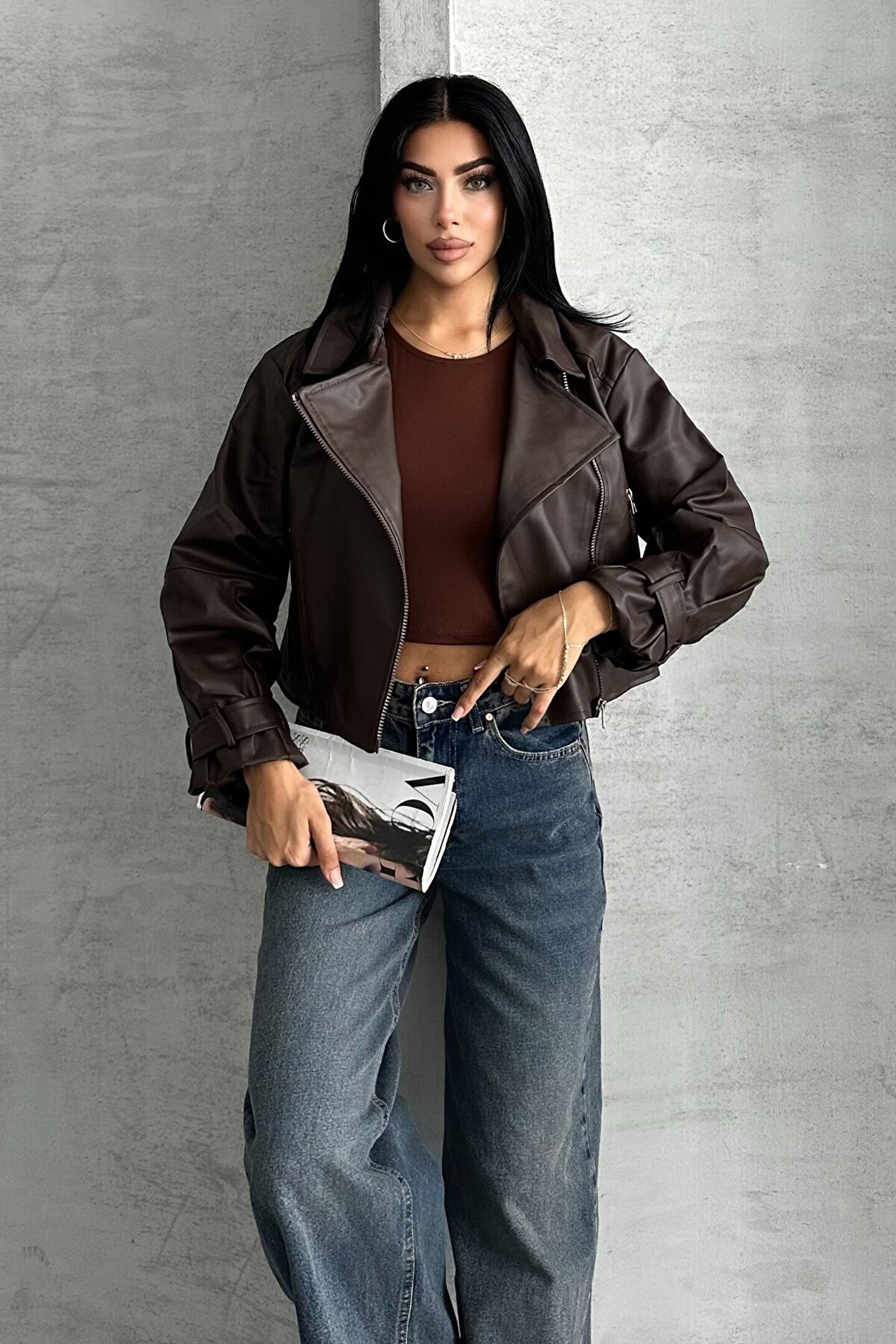 • Tarzınızı tamamlayacak kahverengi deri görünümlü ceket ile kombinlerinize modern bir dokunuş katın.