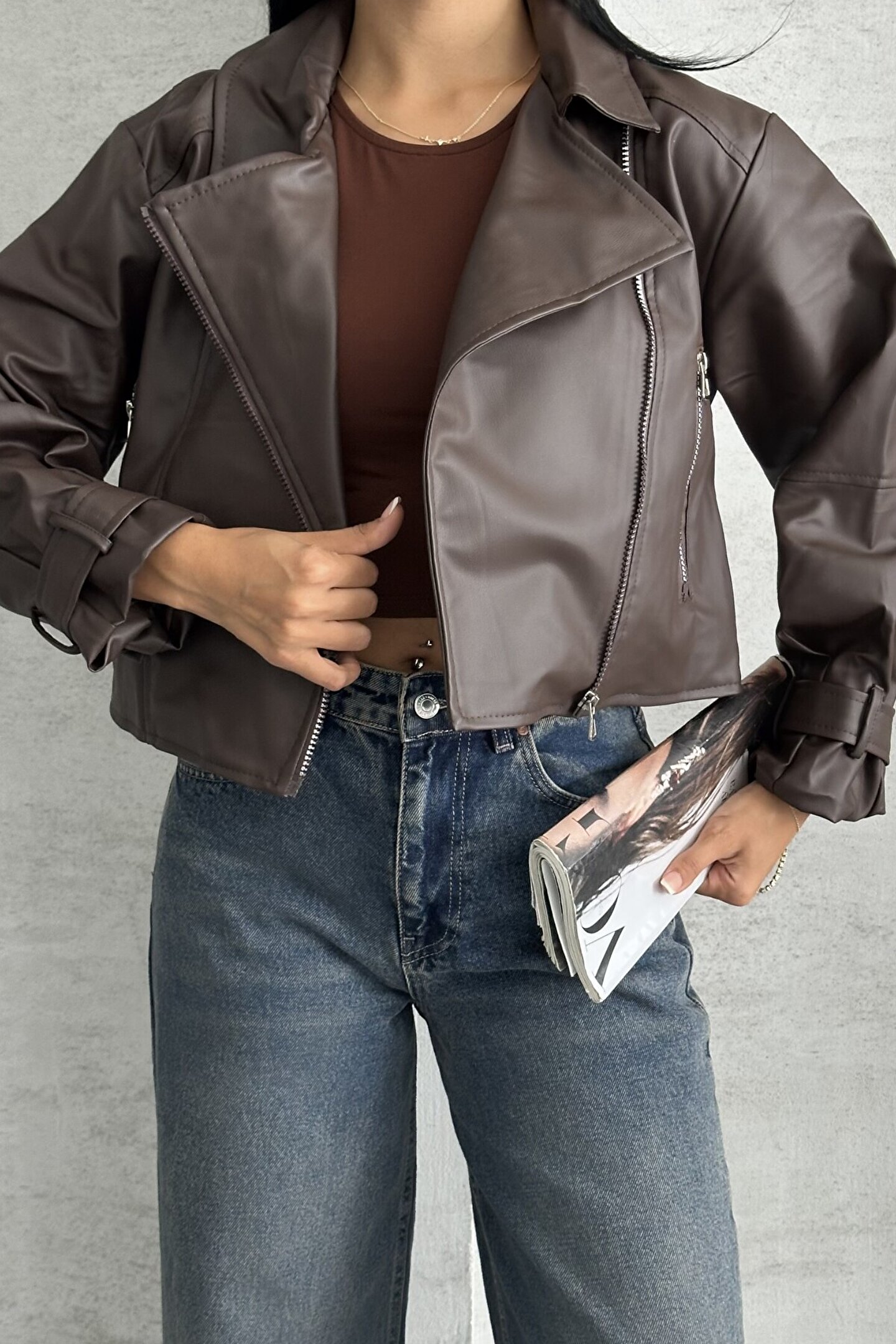 • Tarzınızı tamamlayacak kahverengi deri görünümlü ceket ile kombinlerinize modern bir dokunuş katın.