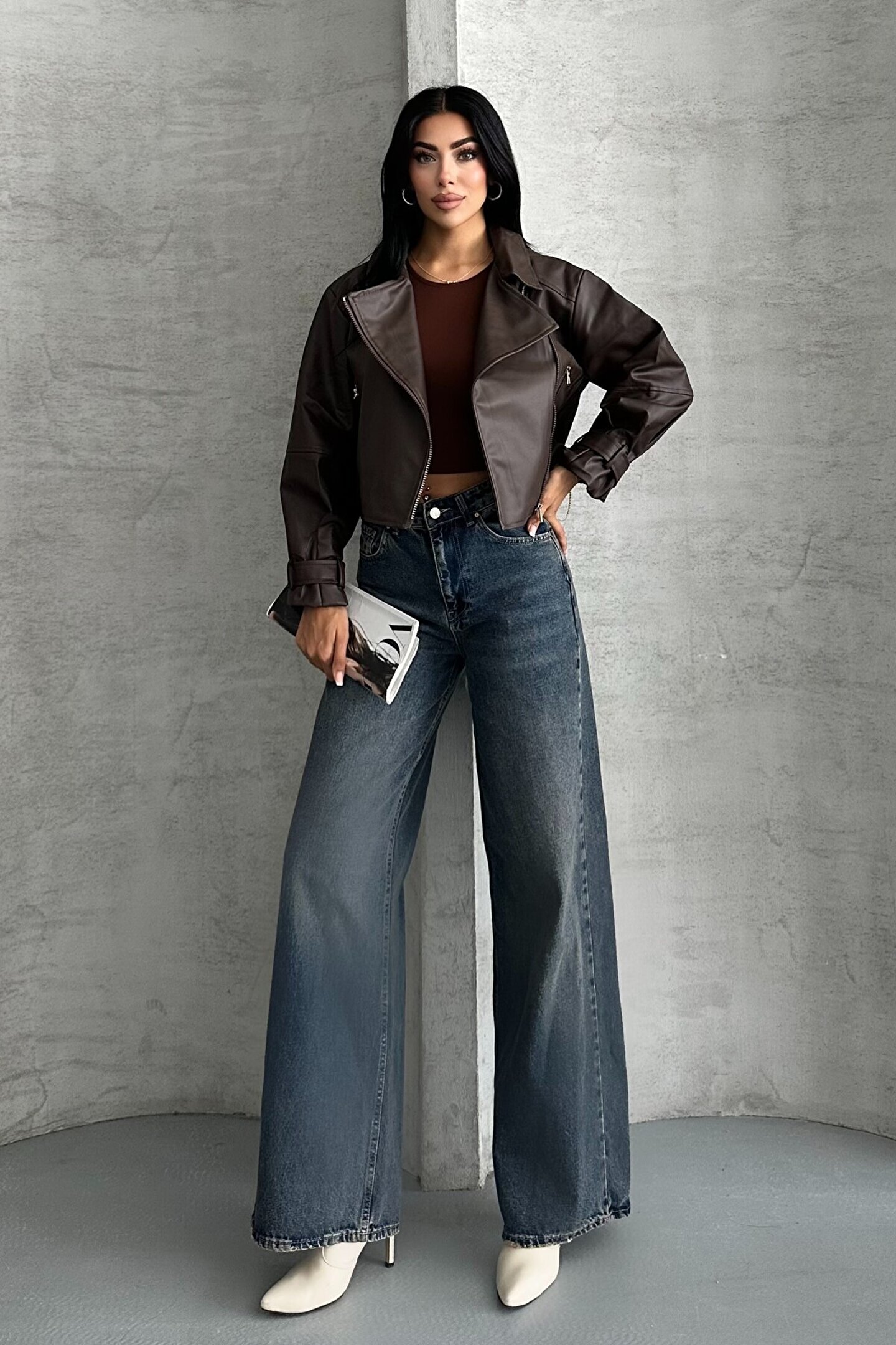 moda armanc Suni Deri Balon Kol Biker Ceket