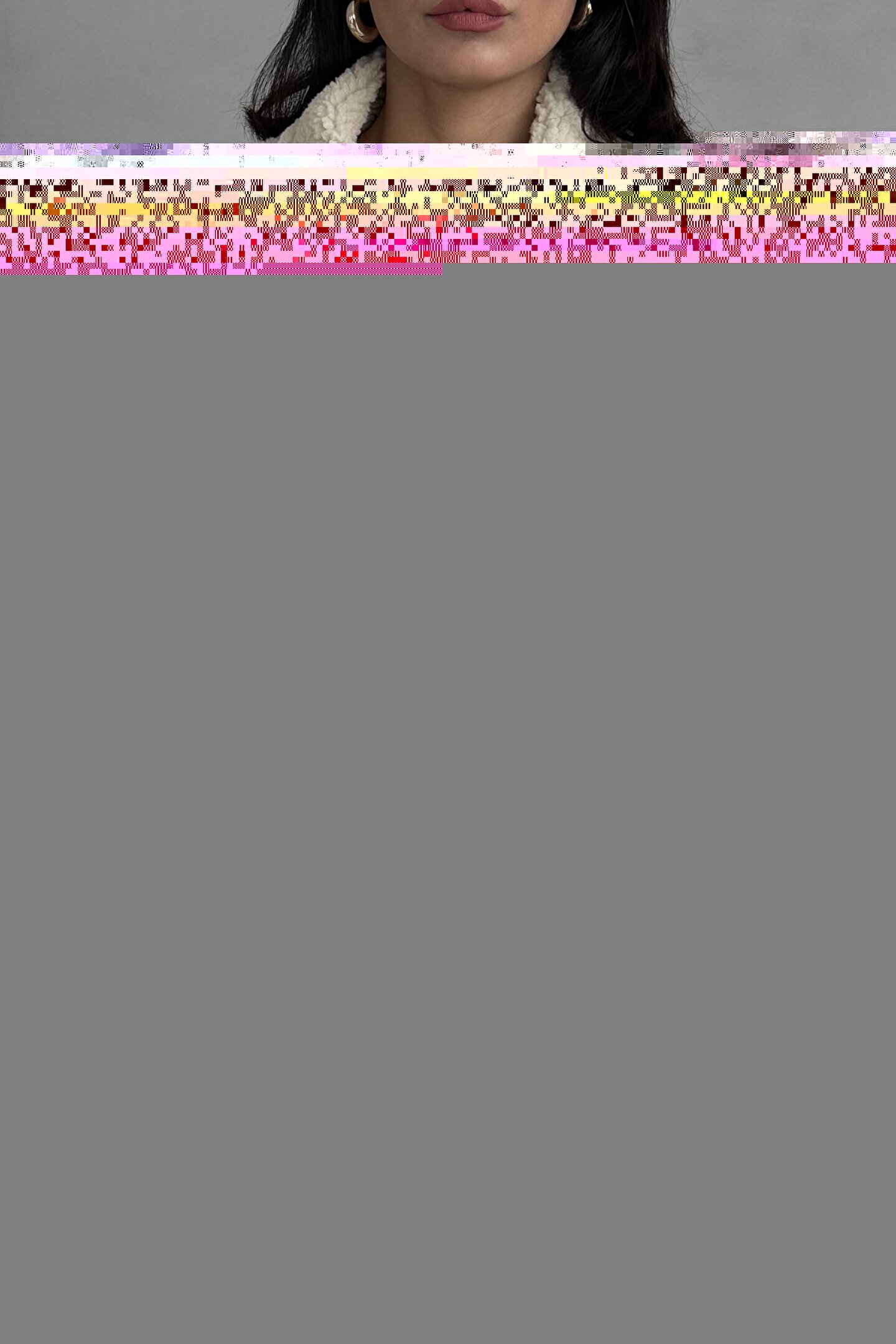 moda armanc Tasarım Detaylı Bej Peluş Kadın Mont