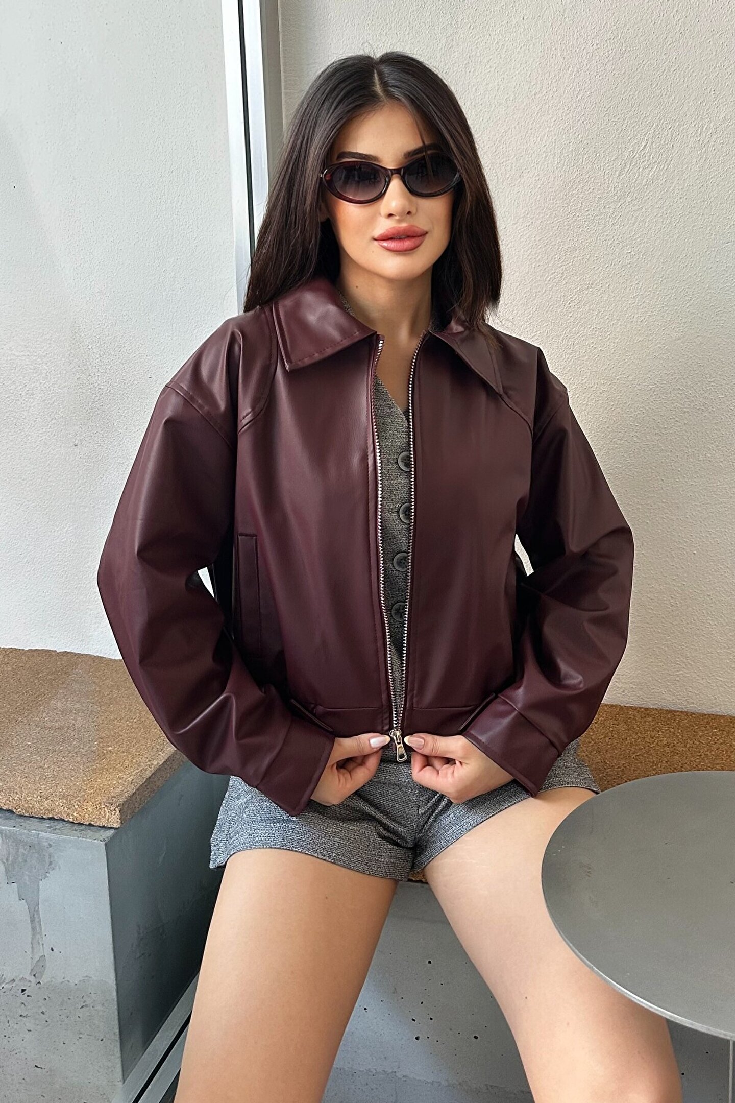 moda armanc Yakalı Suni Deri Bomber Ceket