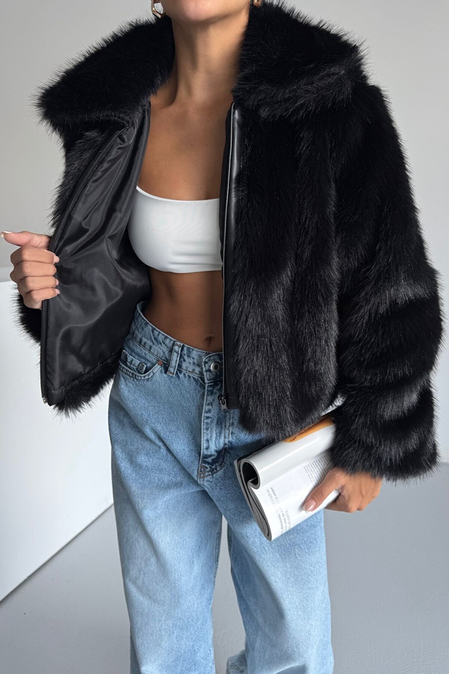 Kış stilinize sofistike bir dokunuş katın!; Yeni sezonun trend parçası olan fermuarlı suni kürk mont, şıklığı ve sıcaklığı bir arada sunar.; ; Yumuşacık dokusu, kaliteli peluş görünümü ve konforlu yapısıyla hem günlük kullanımda hem de özel davetlerde stilinizi ön plana çıkarır.; ; Kaliteli suni kürk kumaş ile ultra yumuşak ve sıcak tutan yapı; Fermuarlı kapanış ile modern ve kullanışlı tasarım; Yüksek moda standartlarında üretim; Kısa kesim ile vücut formunu vurgulayan şık görünüm; Günlük kombinlerinizde jean, tayt, etek ve botlarla mükemmel uyum sağlar;