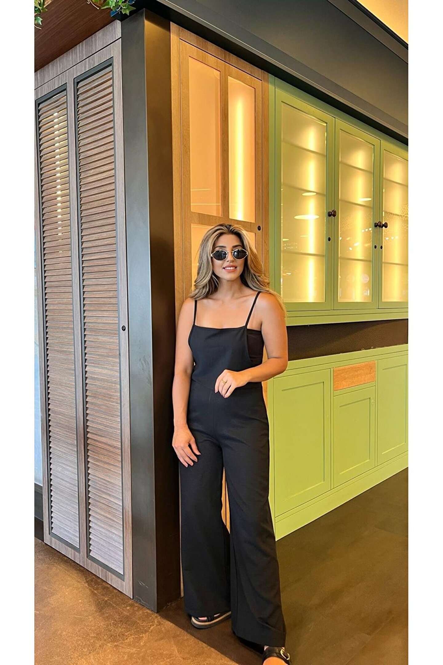 Moda Ebrar EQURİ Kadın Askılı Yandan Fermuarlı Geniş Paçalı Valencia Tulum