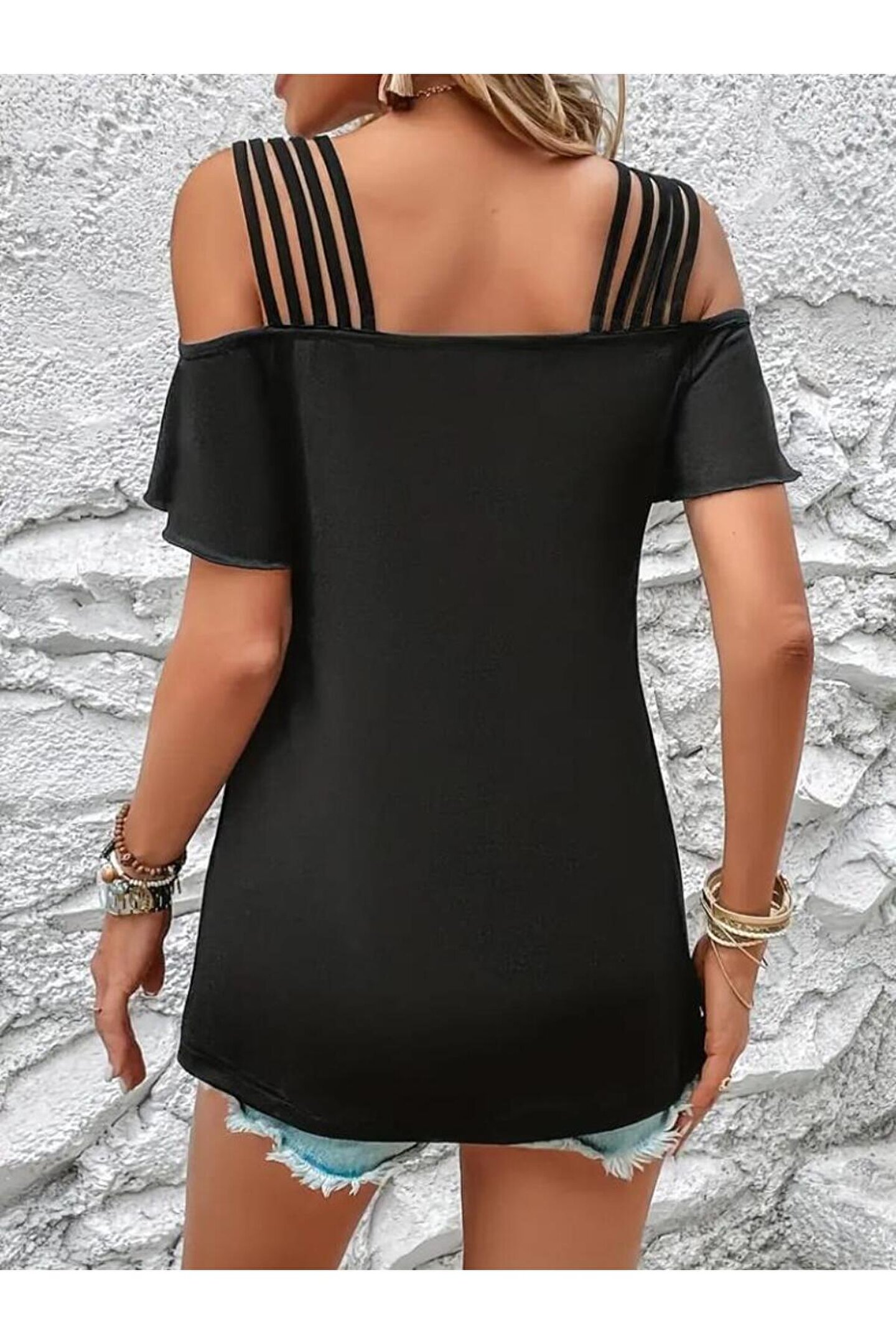 Kadın Kısa Kollu Beş Askılı Viskon Bluz