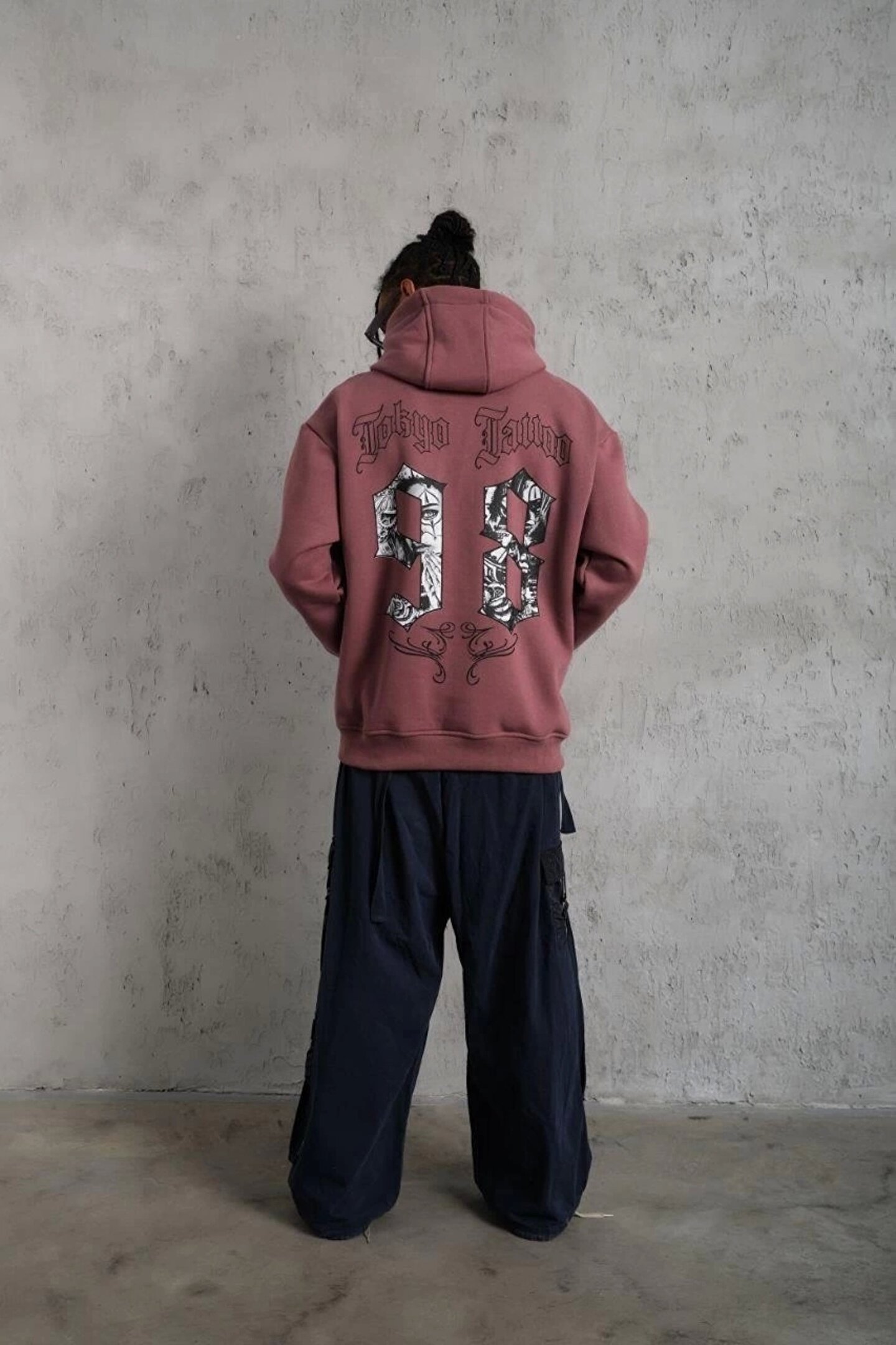 MODA Erkek 98 Baskılı Kapşonlu Sweat - Gül Kurusu