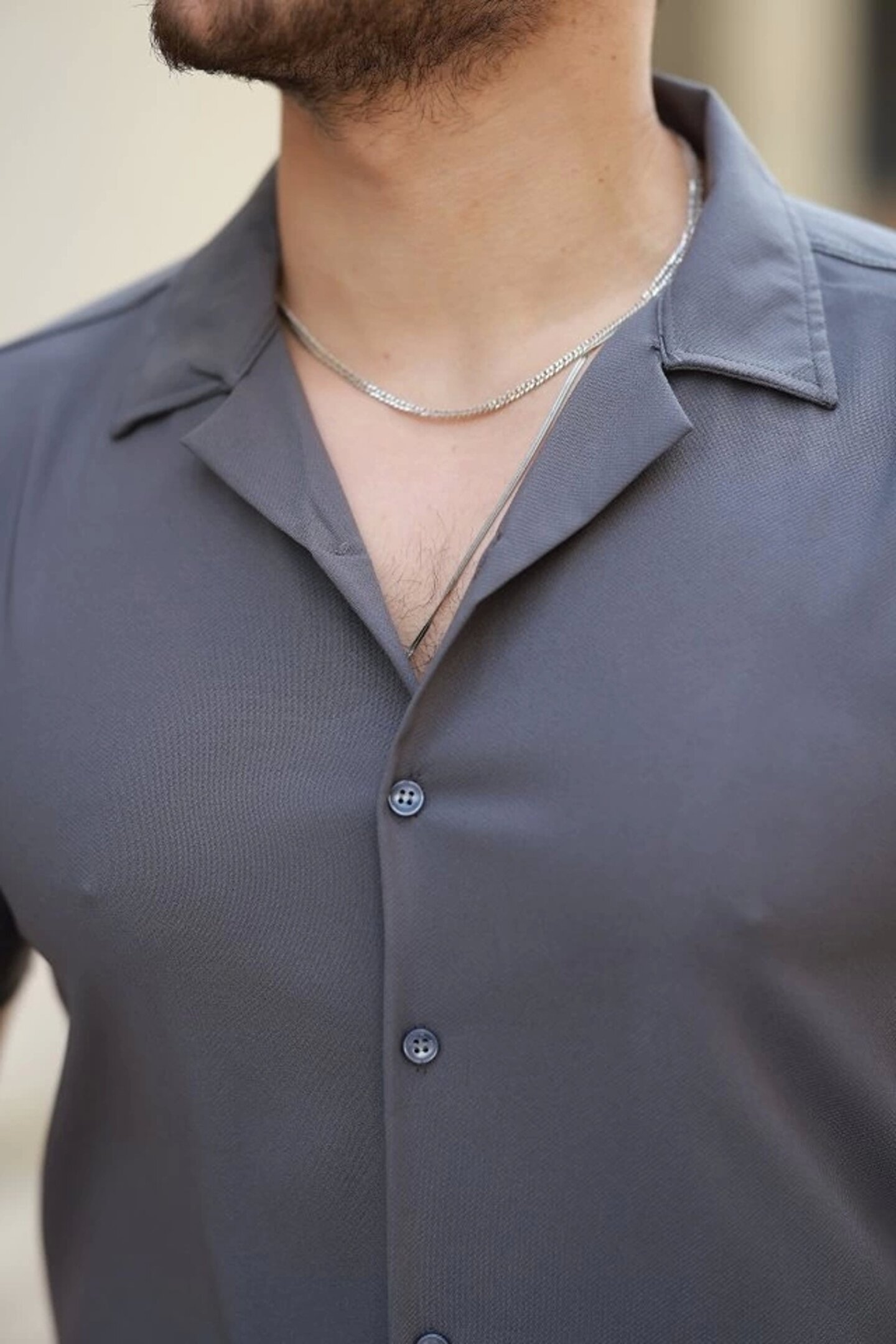 Erkek Apaj Yaka Kısa Kollu Gömlek