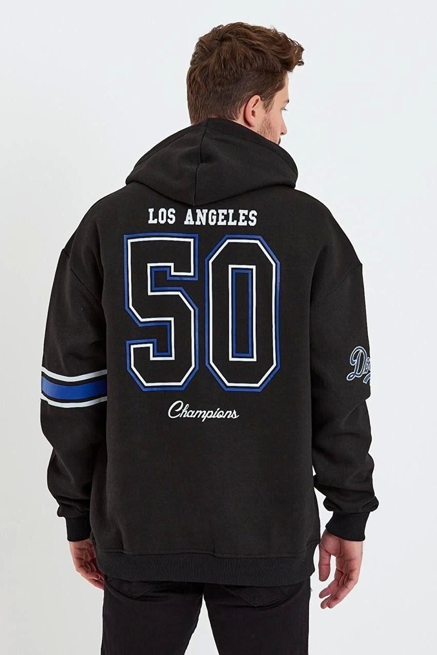Erkek Baskılı Kapşonlu Üç iplik Oversize Sweatshirt - Siyah
