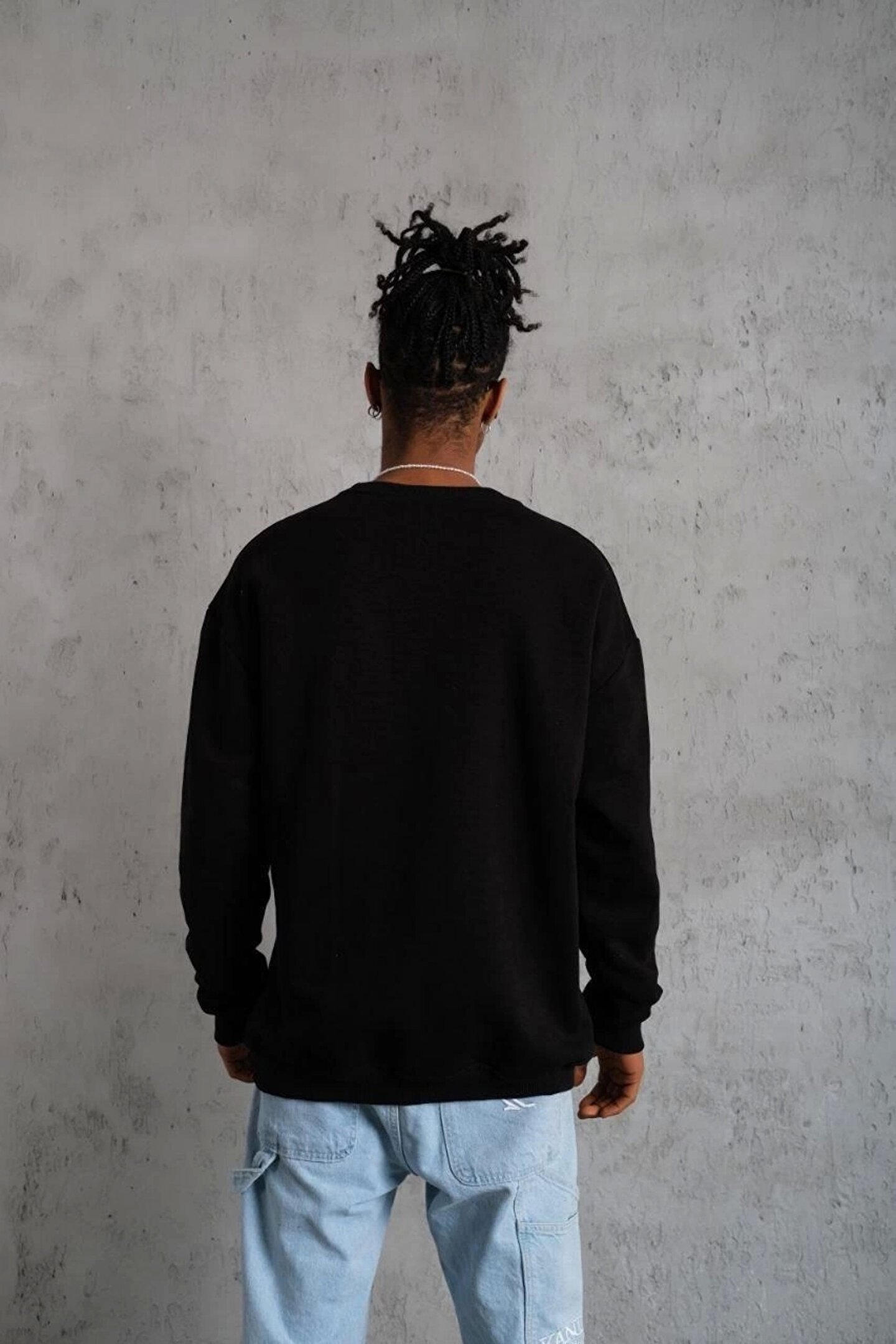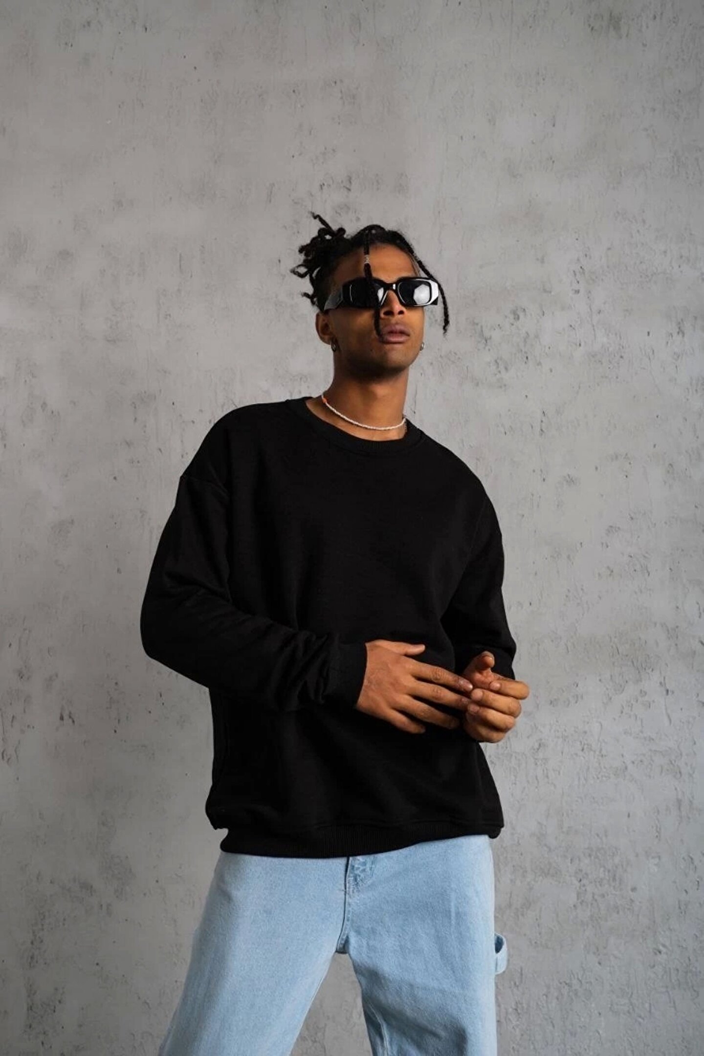 MODA Erkek Düz Bisiklet Yaka Sweat - Siyah
