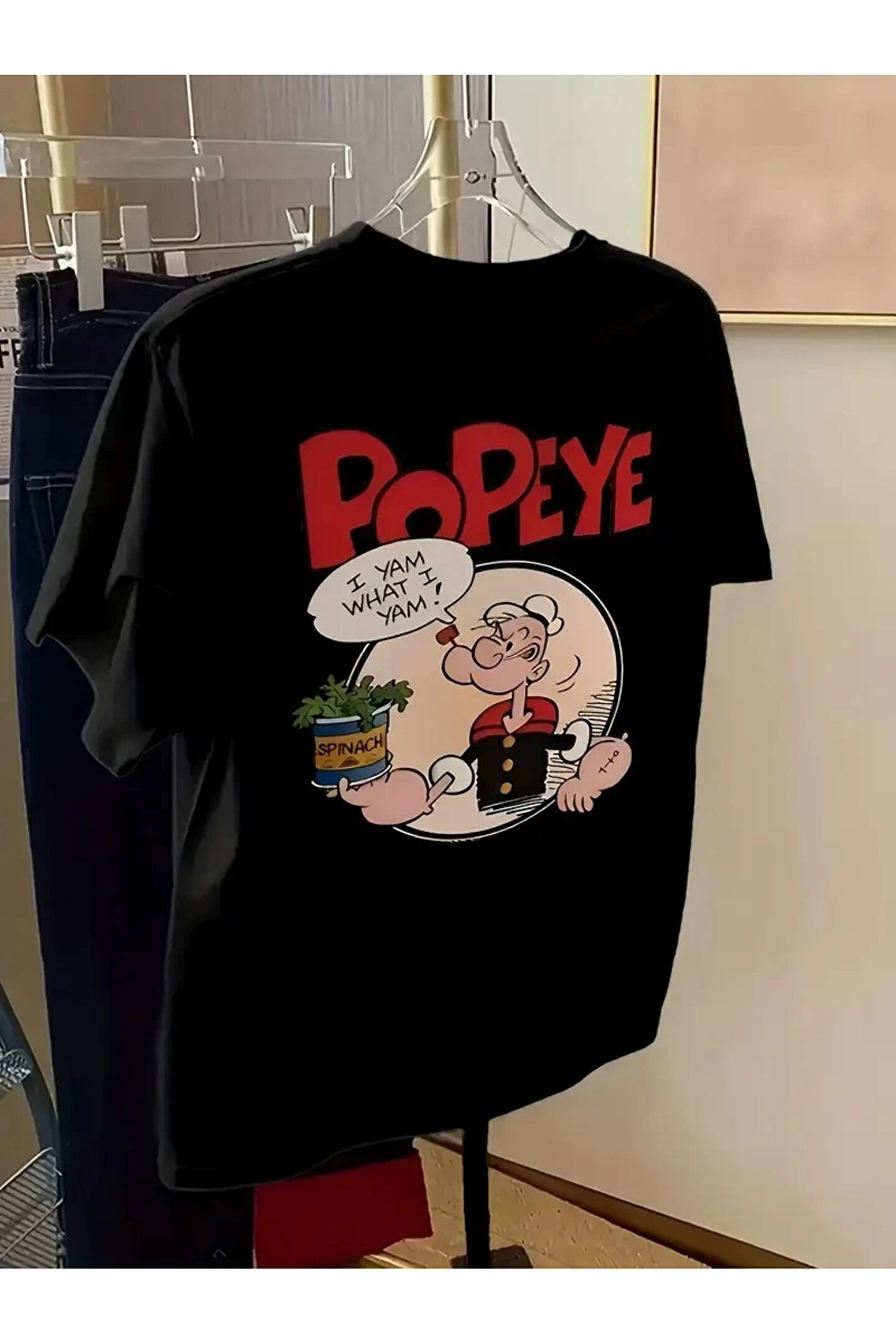Erkek Oversize Tişörtü Popeye the Sailor Retro Vintage Ispanak | Hediye olarak idealdir, farklı boy