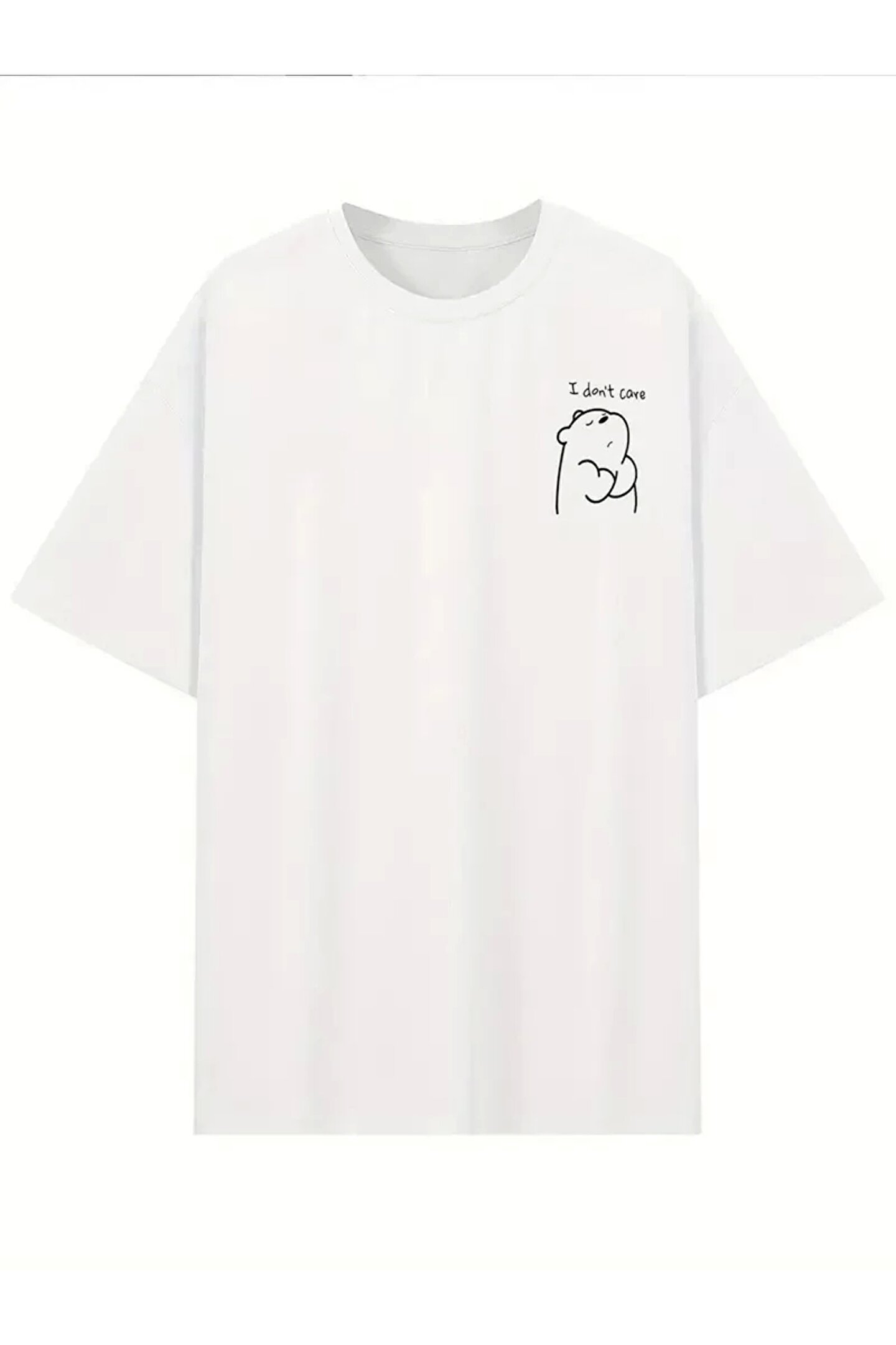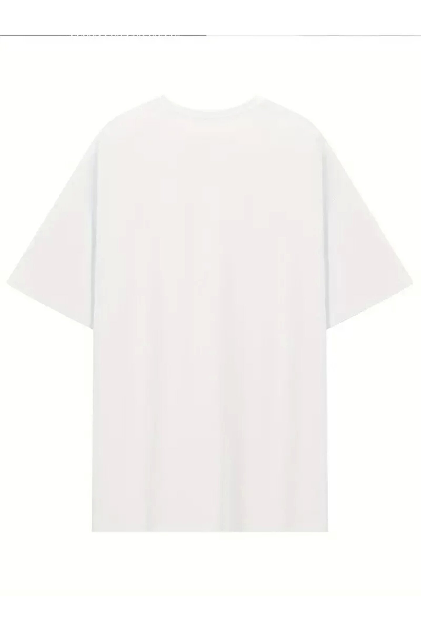 MODA [Günlük T-Shirt] Hafif Kadın Günlük T-Shirt | Bol Kesim, Kısa Kollu, Yuvarlak Yaka, Eğlenceli Karika