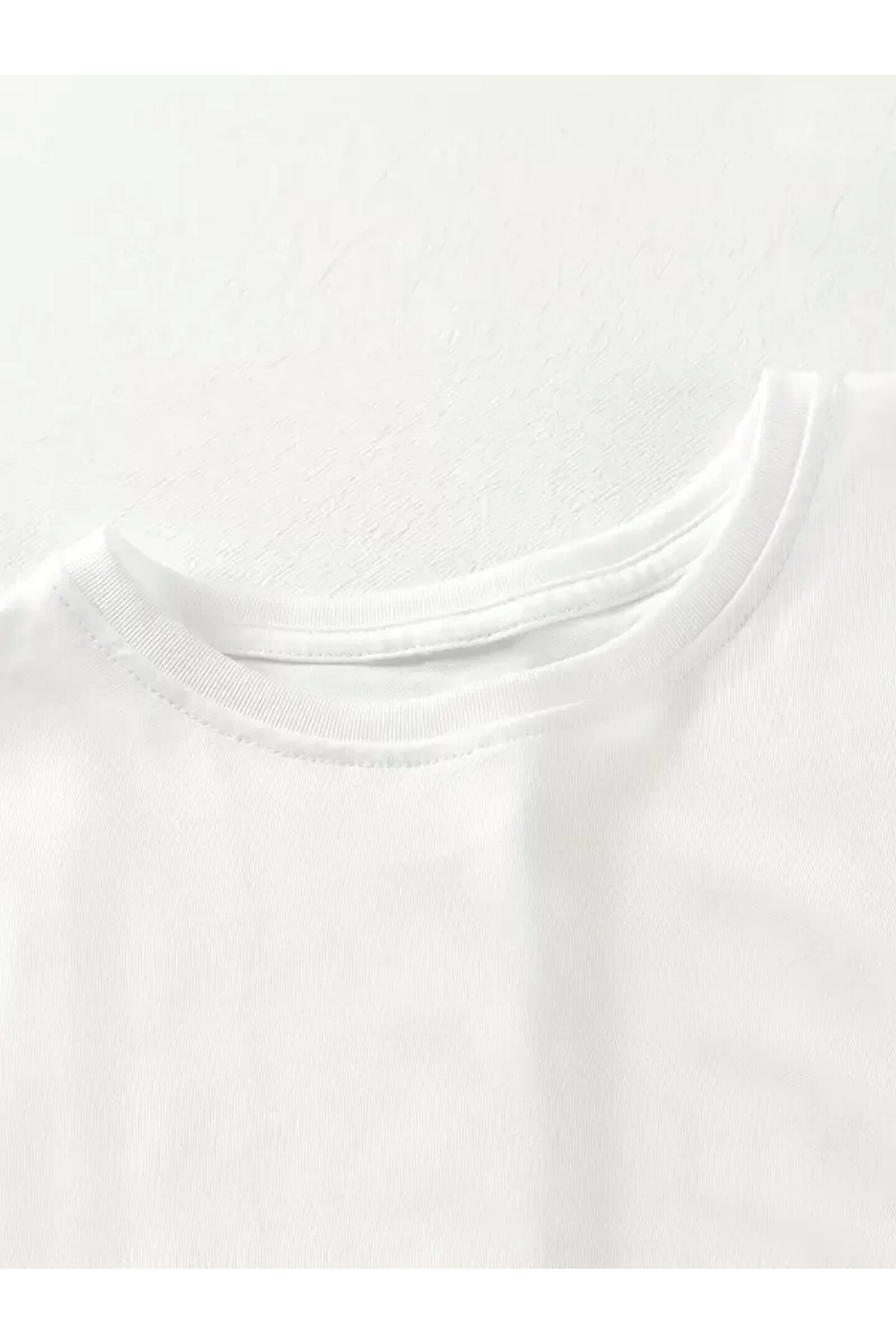 MODA [Günlük T-Shirt] Hafif Kadın Günlük T-Shirt | Bol Kesim, Kısa Kollu, Yuvarlak Yaka, Eğlenceli Karika