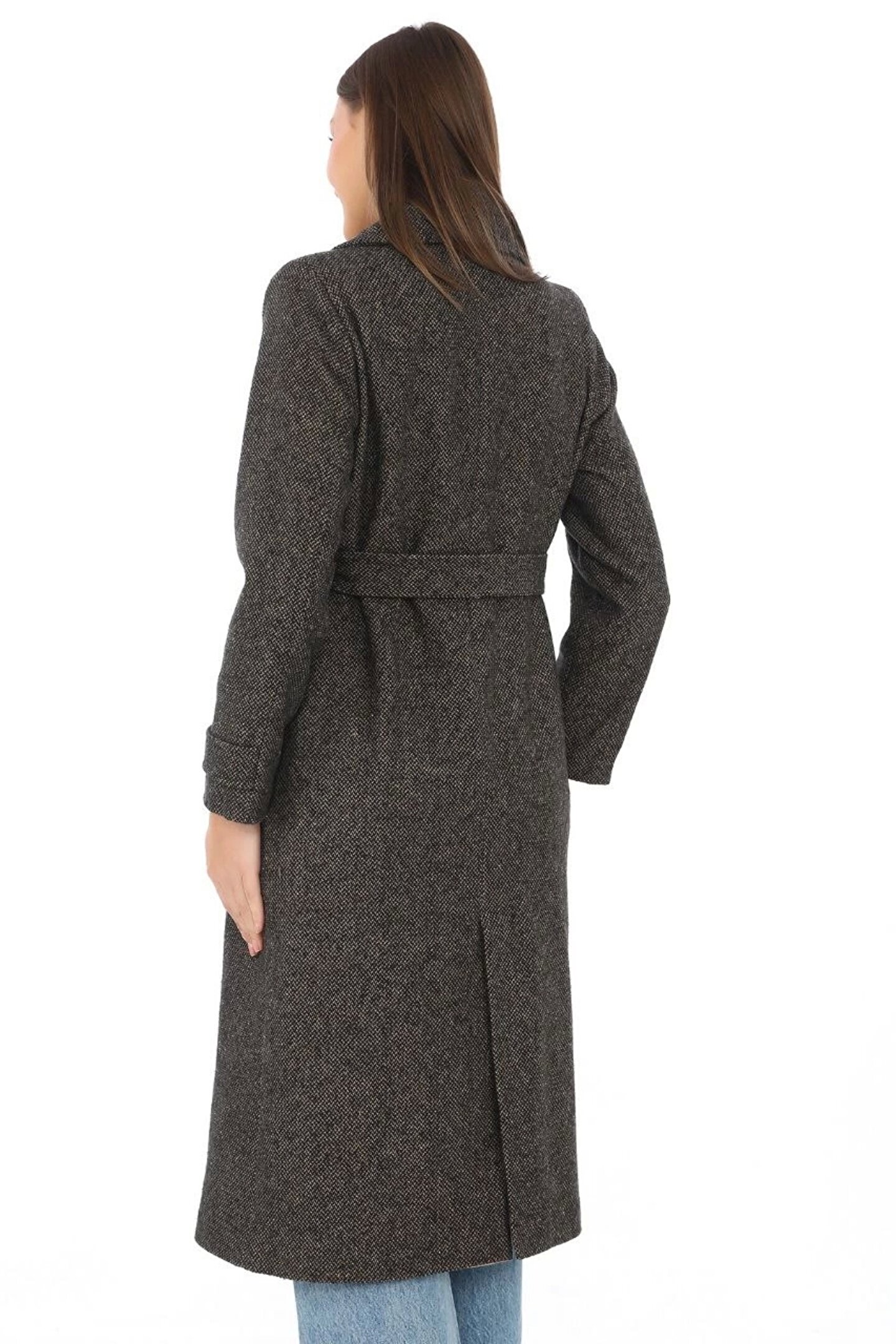 MODA Kadın Balık Sırtı Kaşe Kaban – Uzun Boy Kruvaze Yaka Kuşaklı Astarlı Kışlık Tesettür Kaban, Yünlü Do