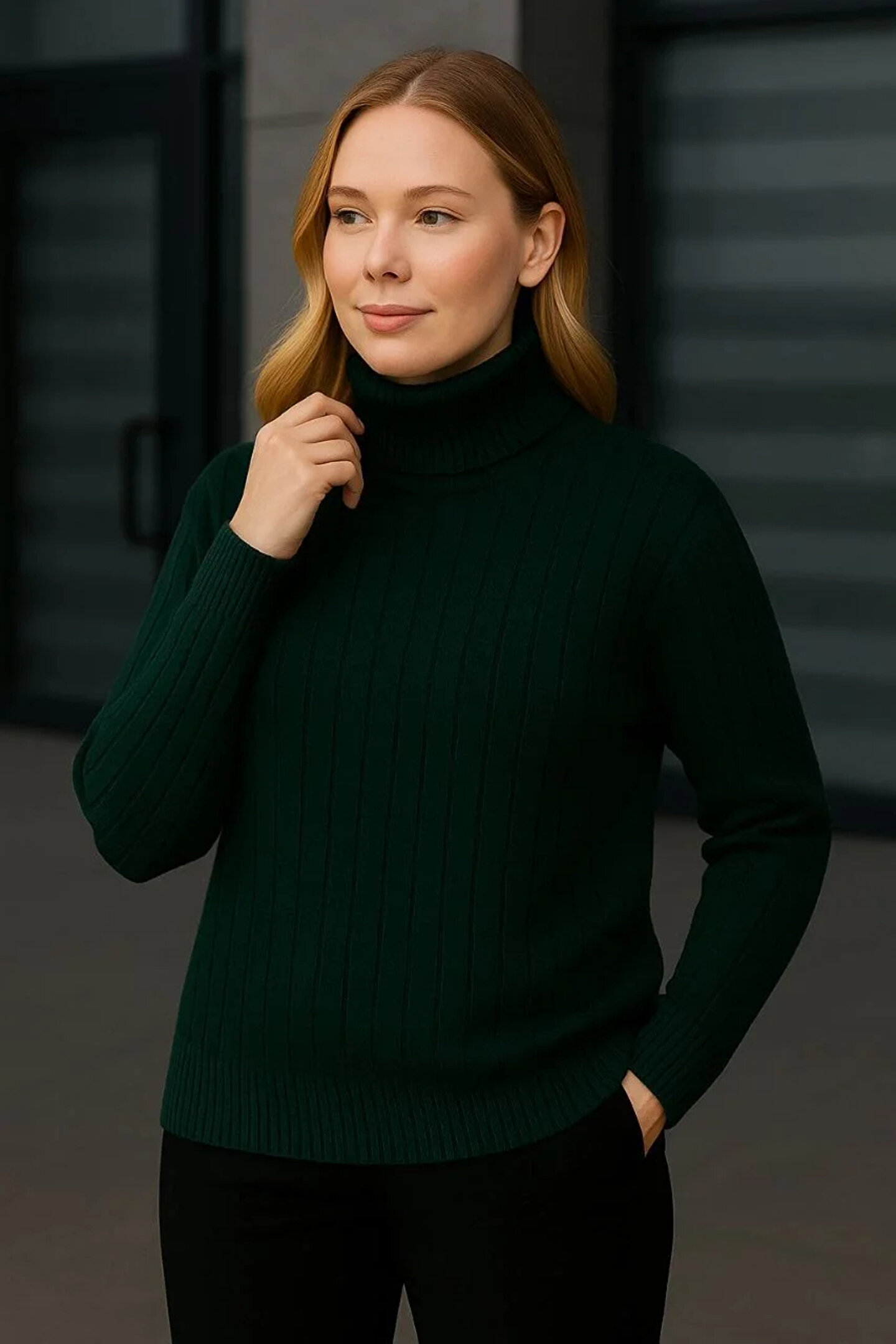 Balıkcı Yaka Bağazlı Triko Kazak Pamuklu Kalın Fitilli Dokuma - Haki