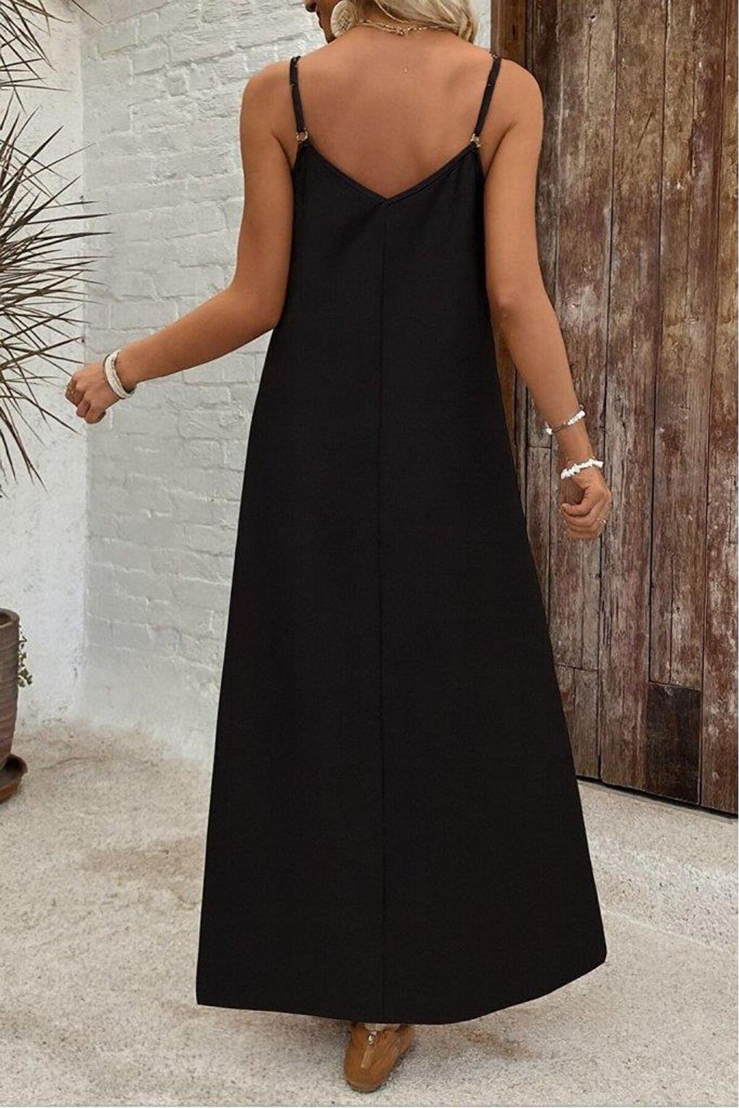 Kadın Ip Askılı Geniş V Yakalı Desenli Süprem Elbise
