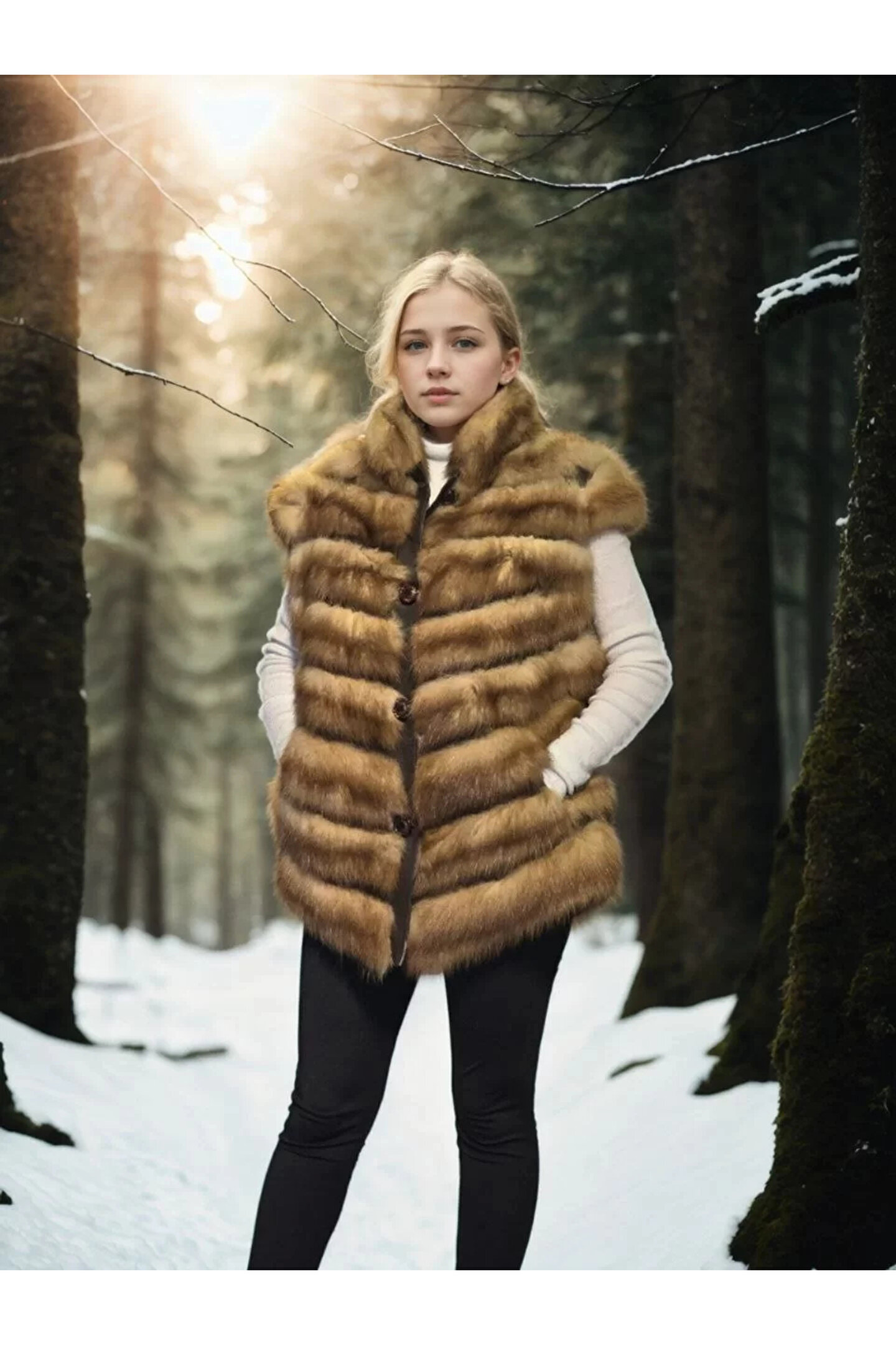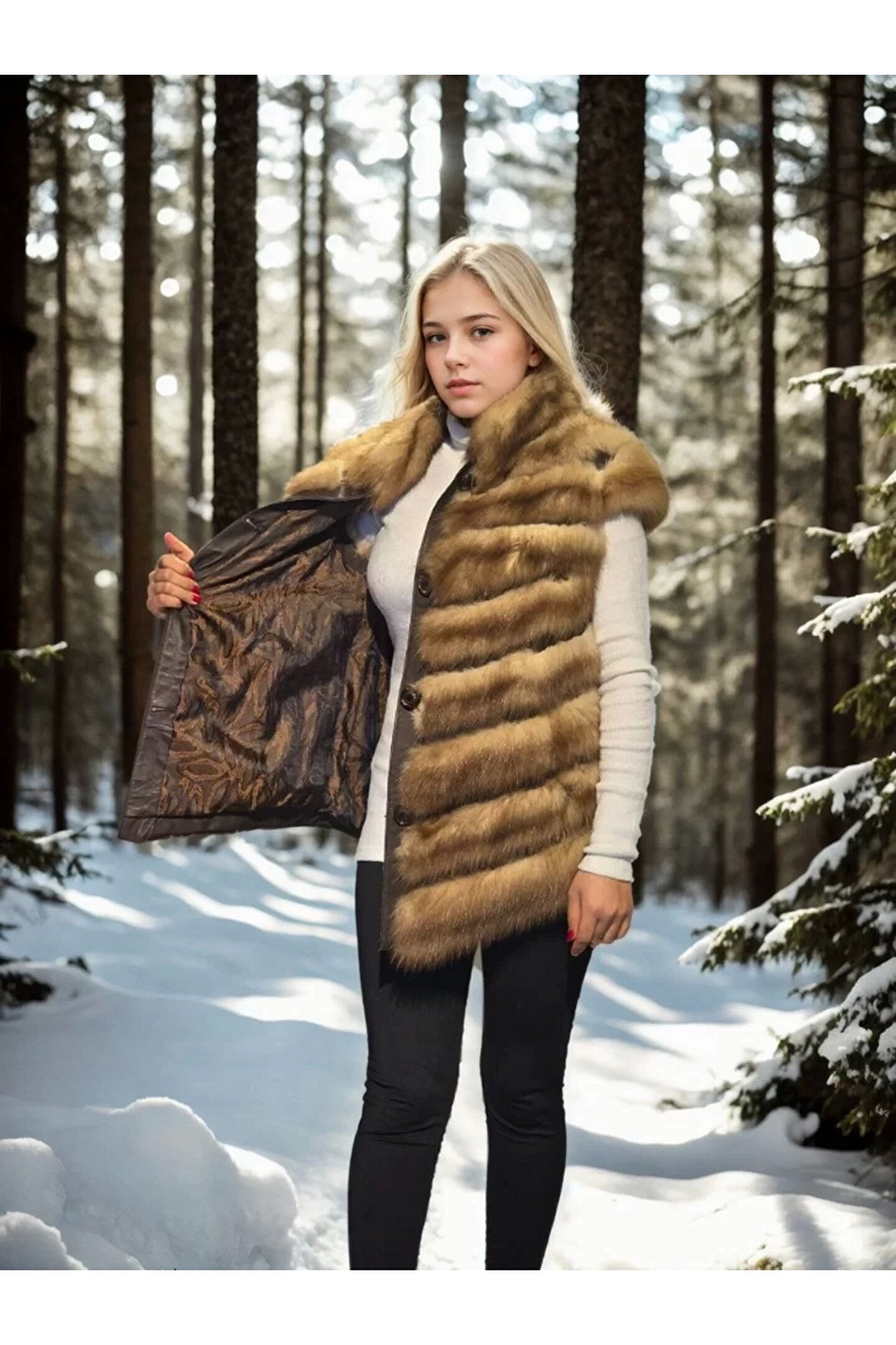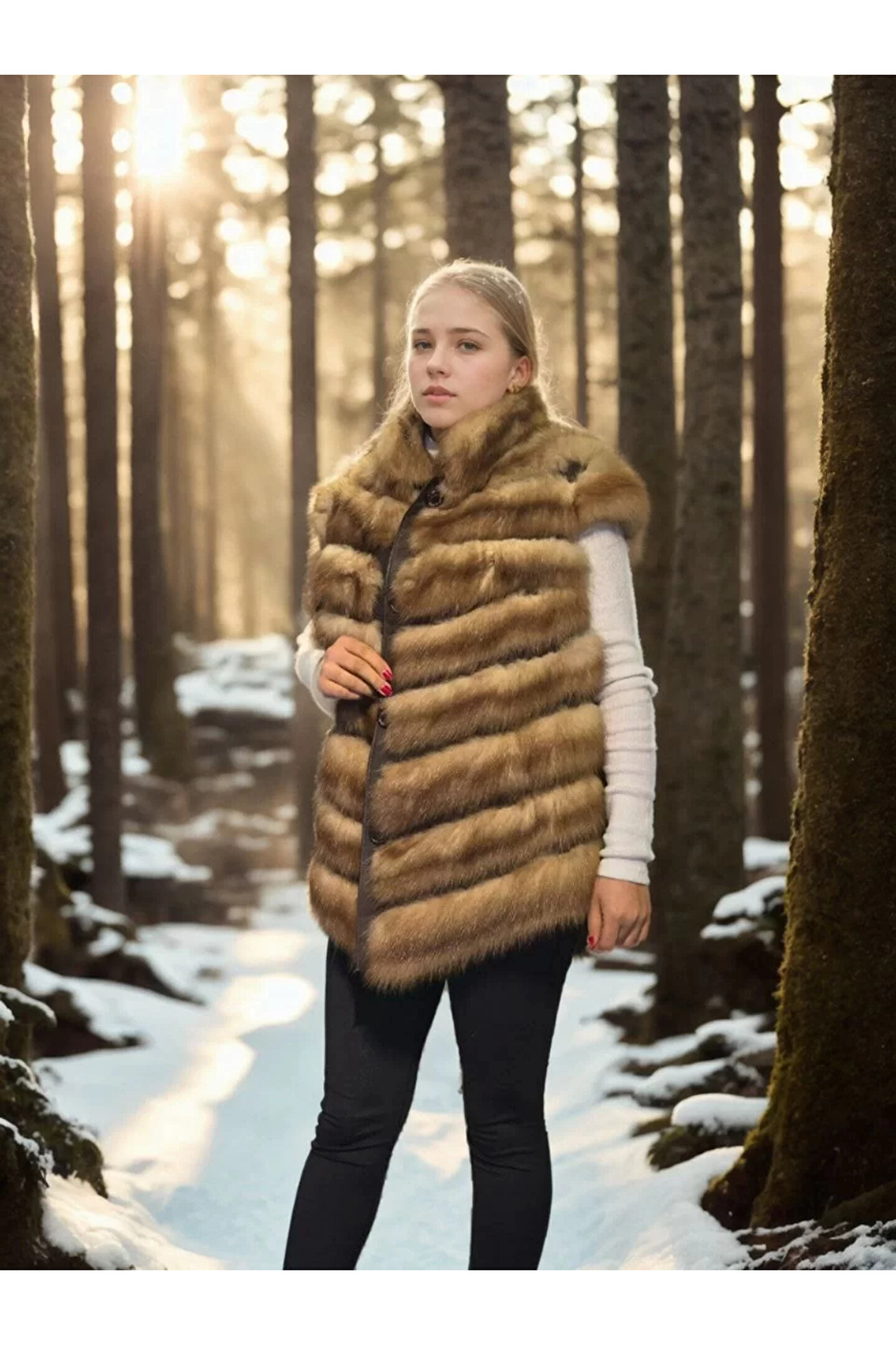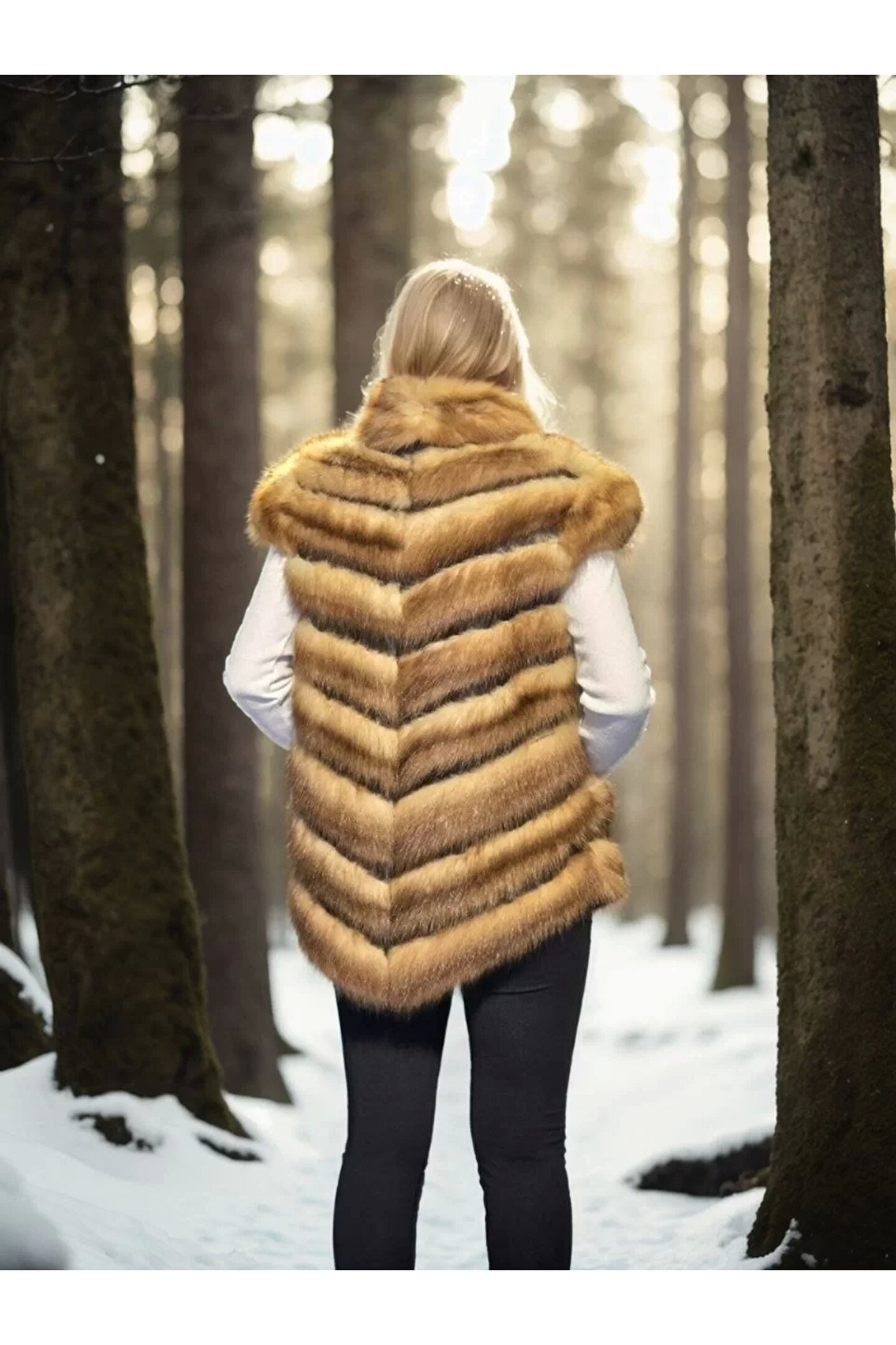 MODA Kadın Kolsuz Hakiki Kürk - Kahve