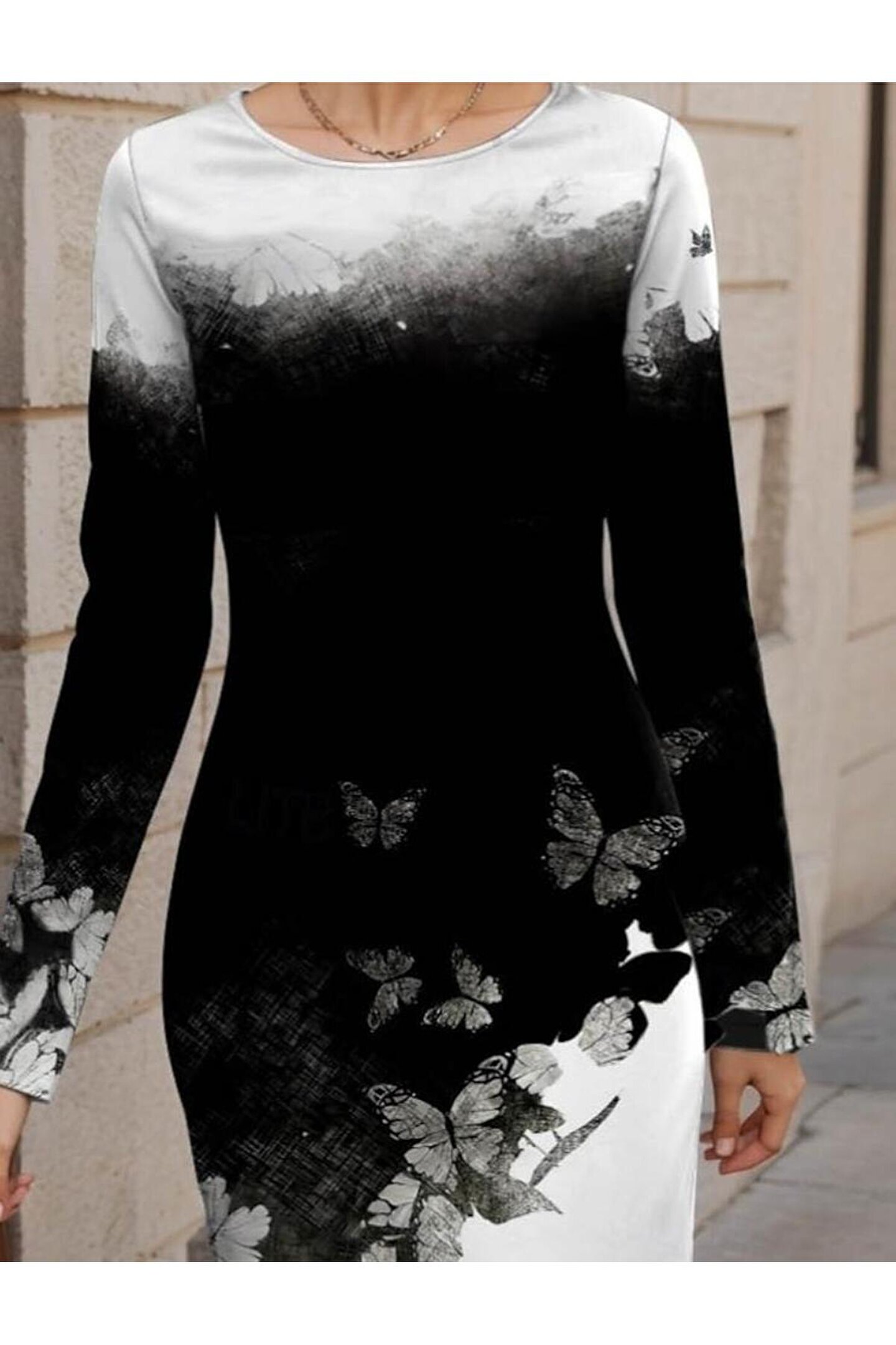MODA Kadın Uzun Kollu Bisiklet Yaka çiçek Desenli Kısa şardonlu Dalgıç Elbise
