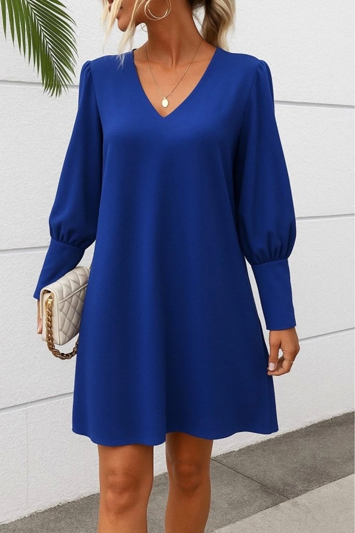 Kadın Uzun Kollu V Yakalı Kısa Ithal Krep Elbise