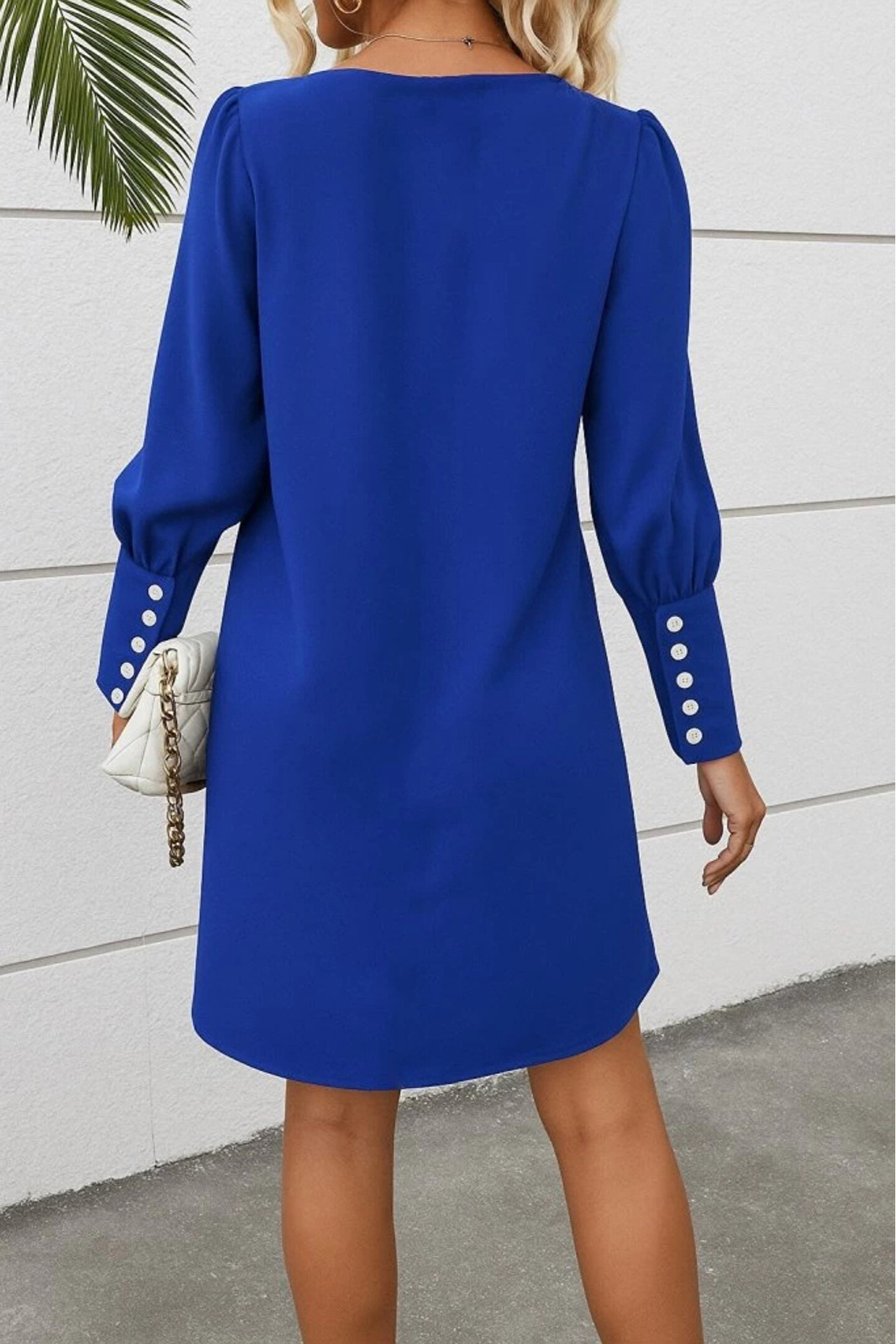MODA Kadın Uzun Kollu V Yakalı Kısa Ithal Krep Elbise