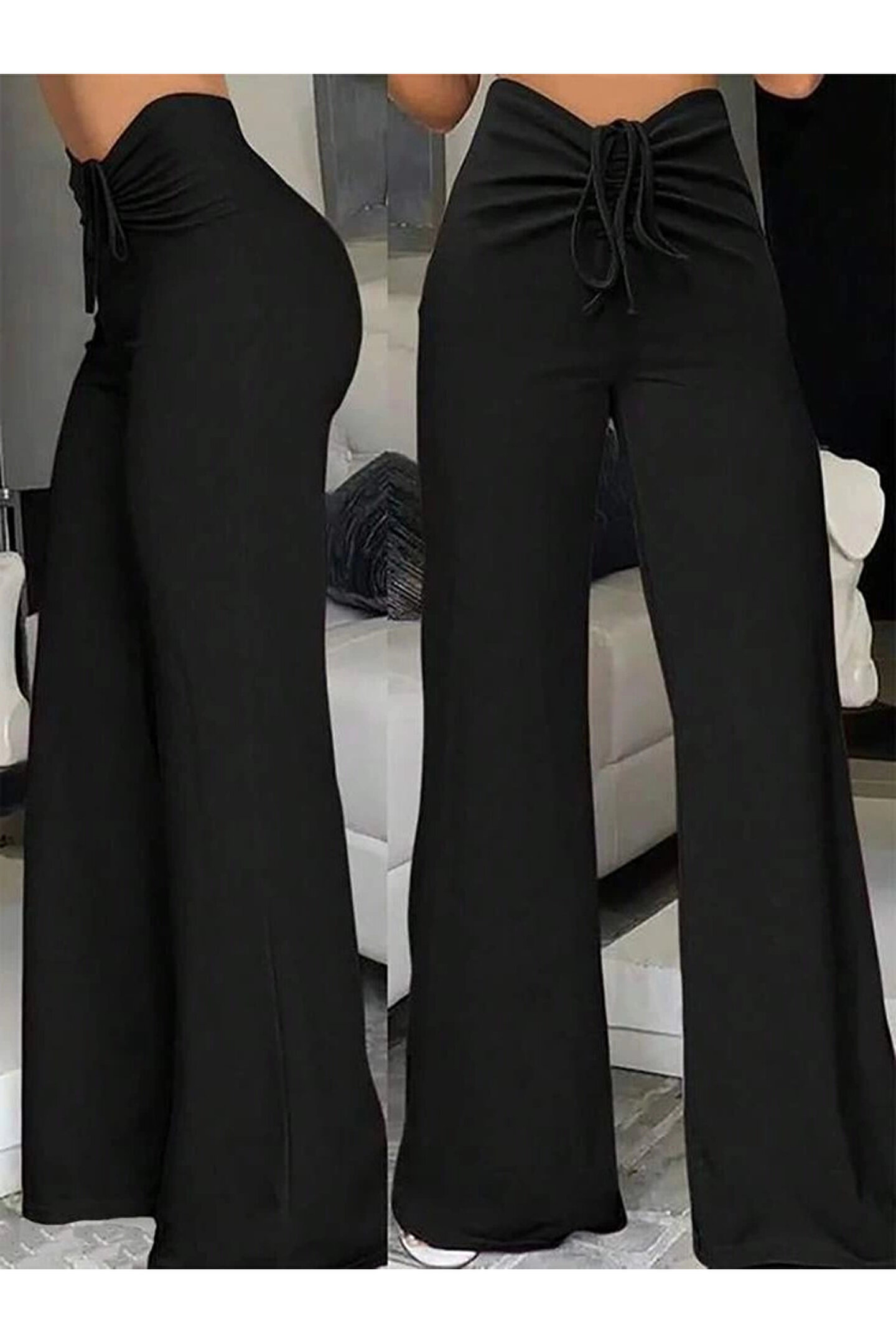 MODA Kadın Yüksek Bel önden Büzgülü Ispanyol Ithal Krep Pantolon