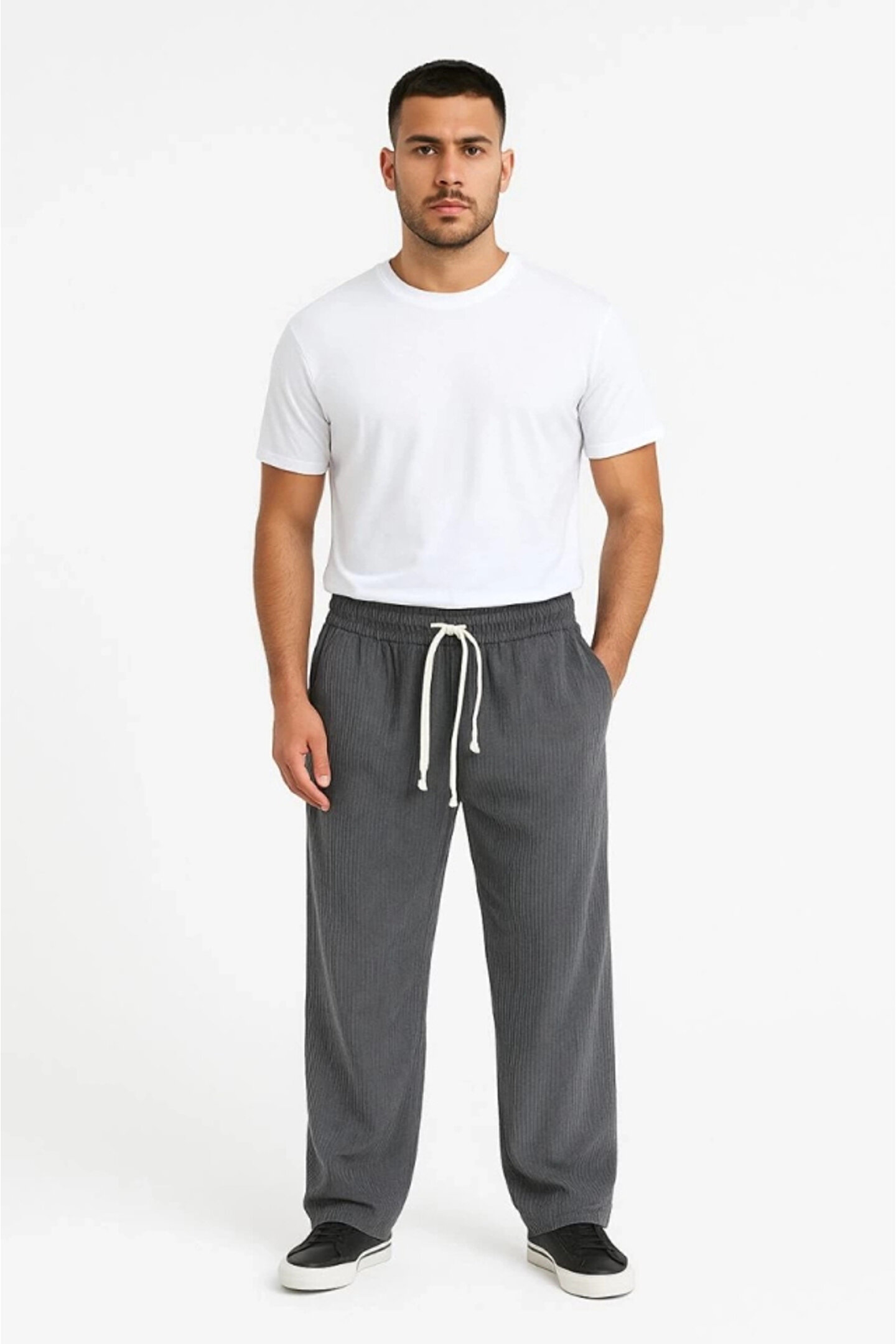 MDB Erkek Fitilli Kadife Cepli Buggy Pantolon Oversize Rahat Kalıp Füme