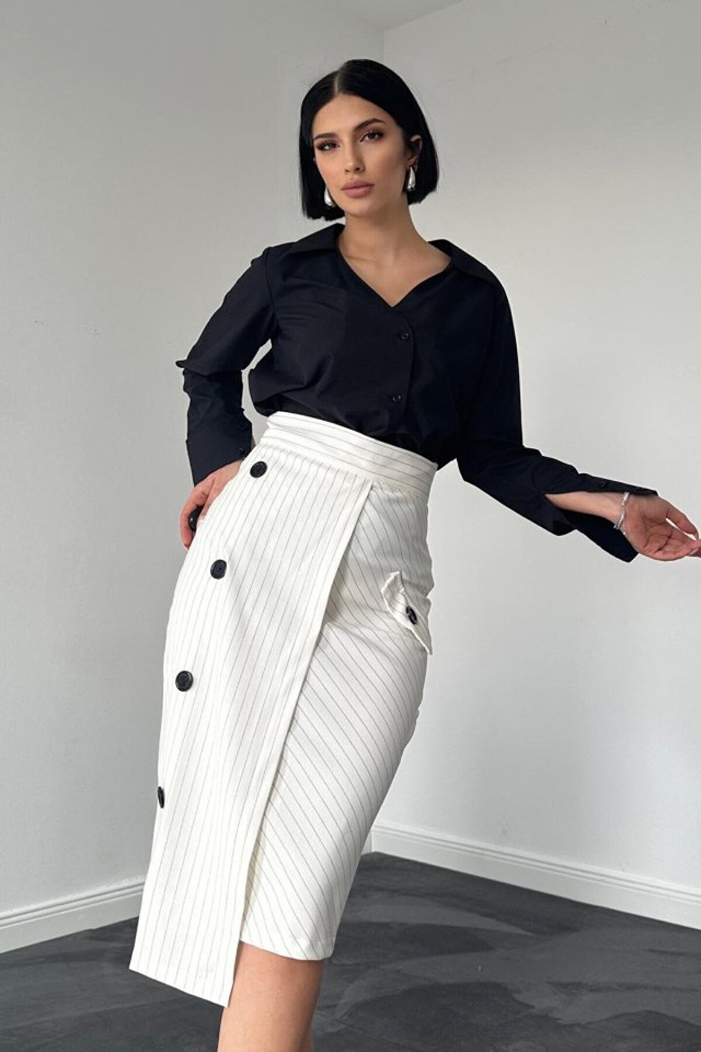 MODA munn collection Beyaz Çizgili Poliviskon Etek
