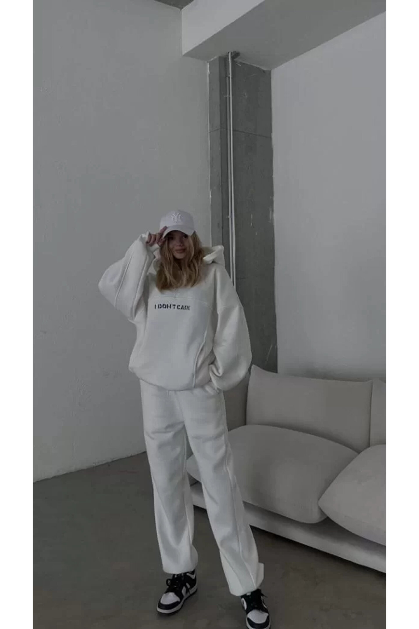 Nakış İşlemeli Üç İplik Sweat Takım- Beyaz