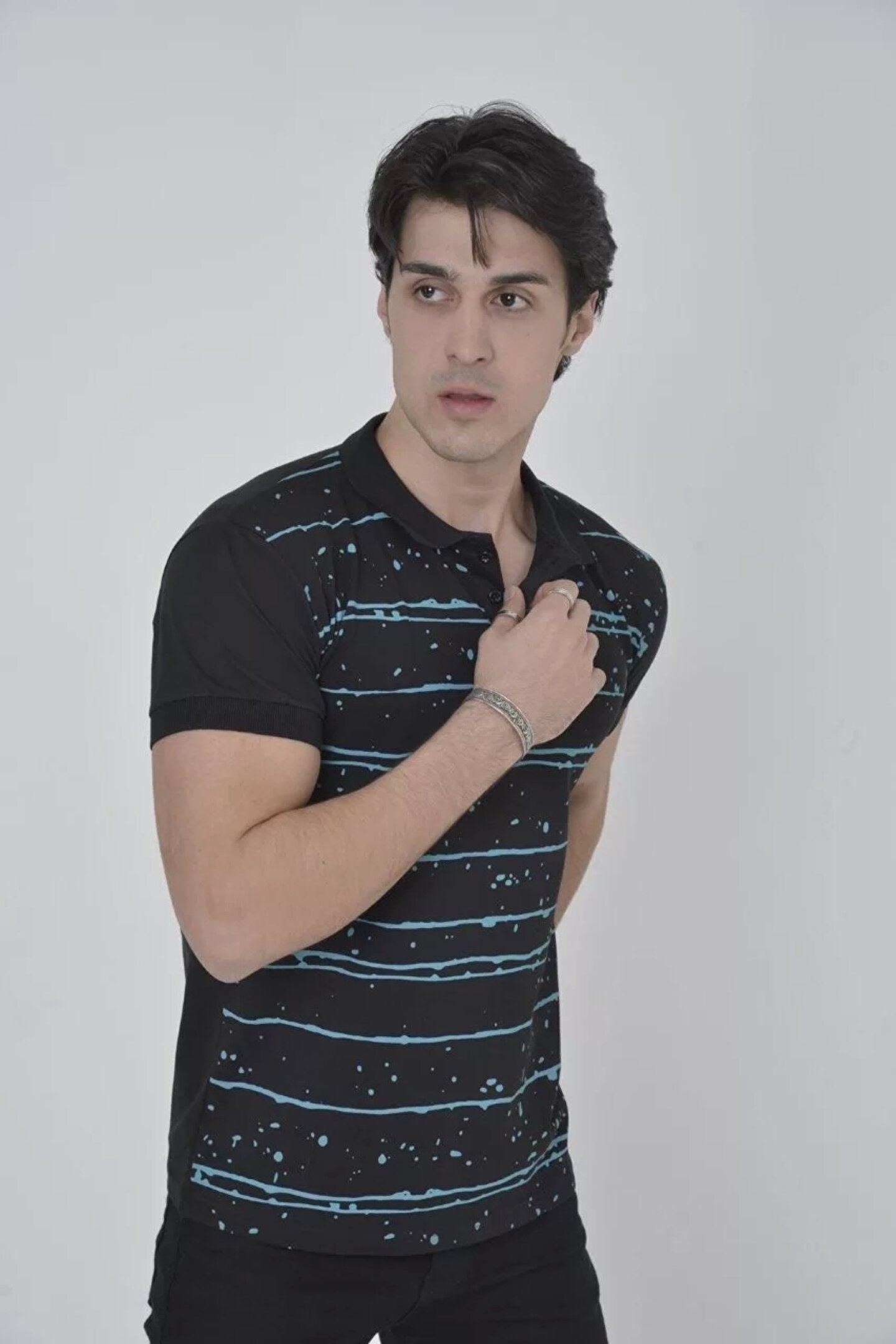 Moda Shop & Butik Erkek Yakalı Slim Fit Pike Çizgili T-Shirt - Siyah