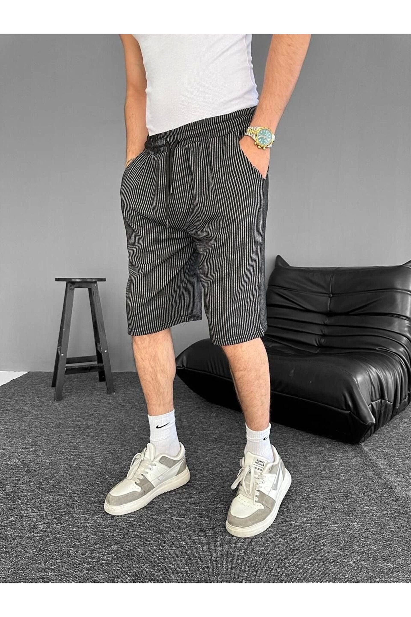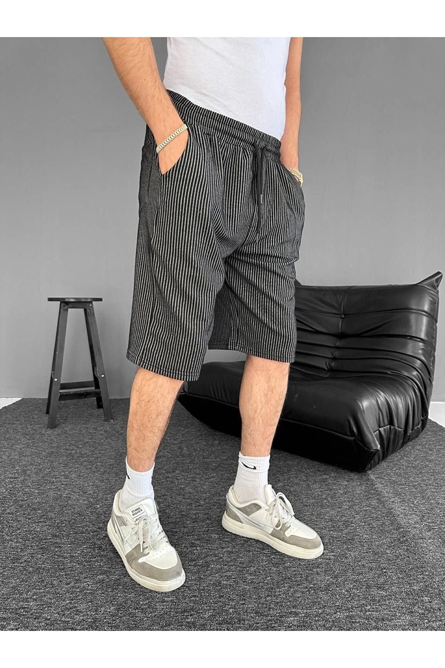 MODA Su Yolu Çizgili Ön Arka Cepli Şort Yazlık Nefes Alabilir - Siyah