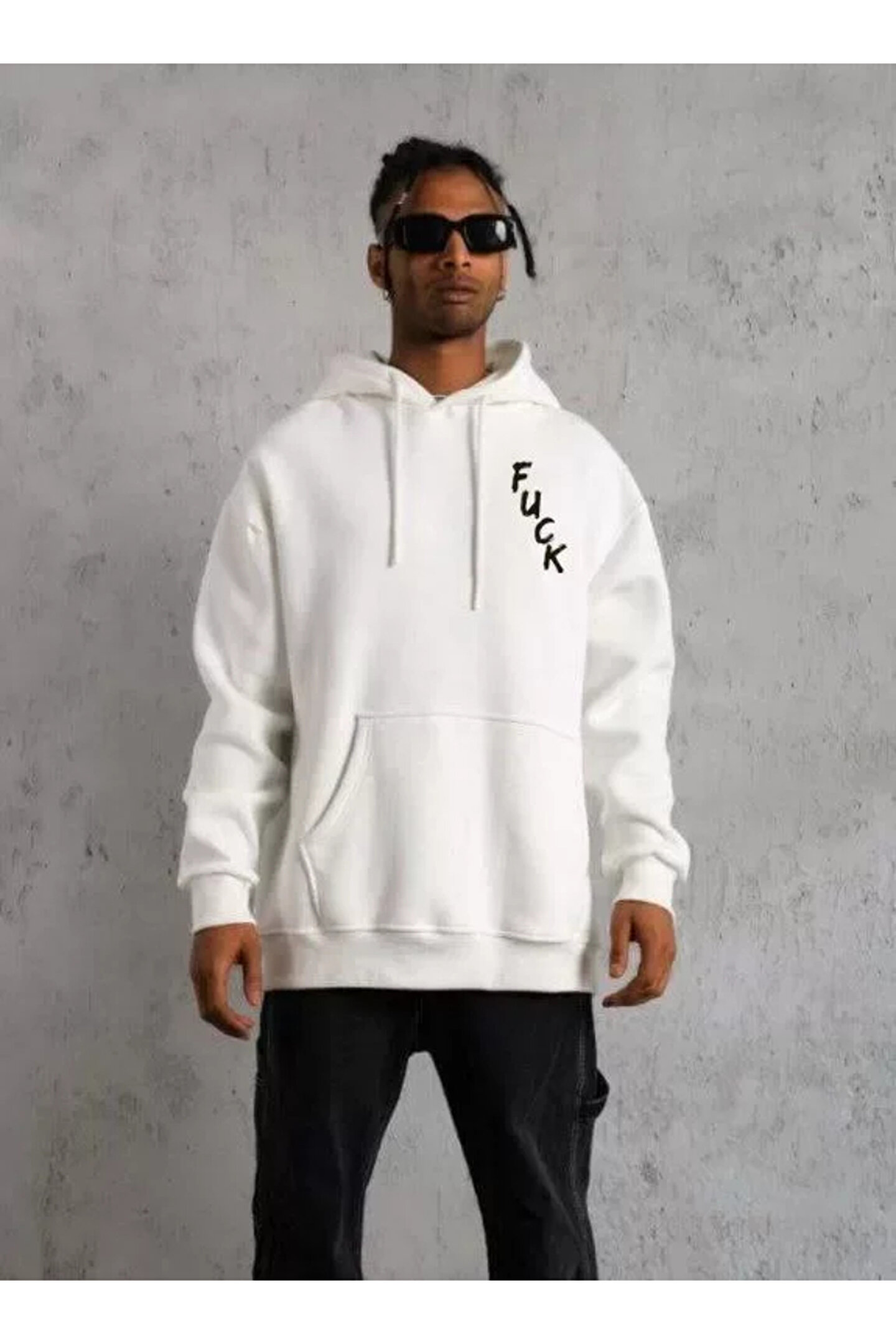 MODA Unisex Kapşonlu Uzun Kol Baskılı Sweetshirt - Beyaz