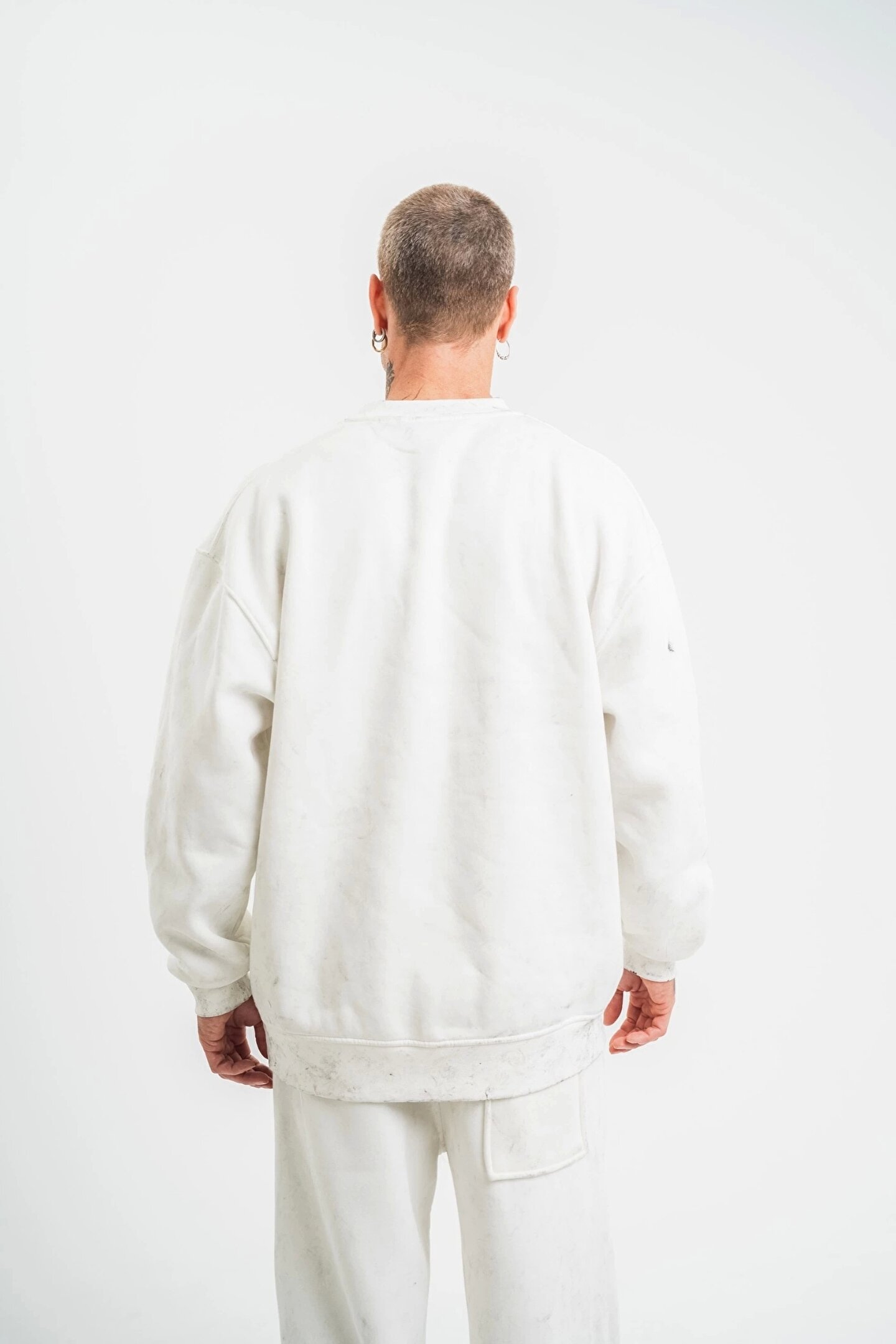 Unisex Uzun Kol Bisiklet Yaka Yıkamalı SweatShirt - Beyaz