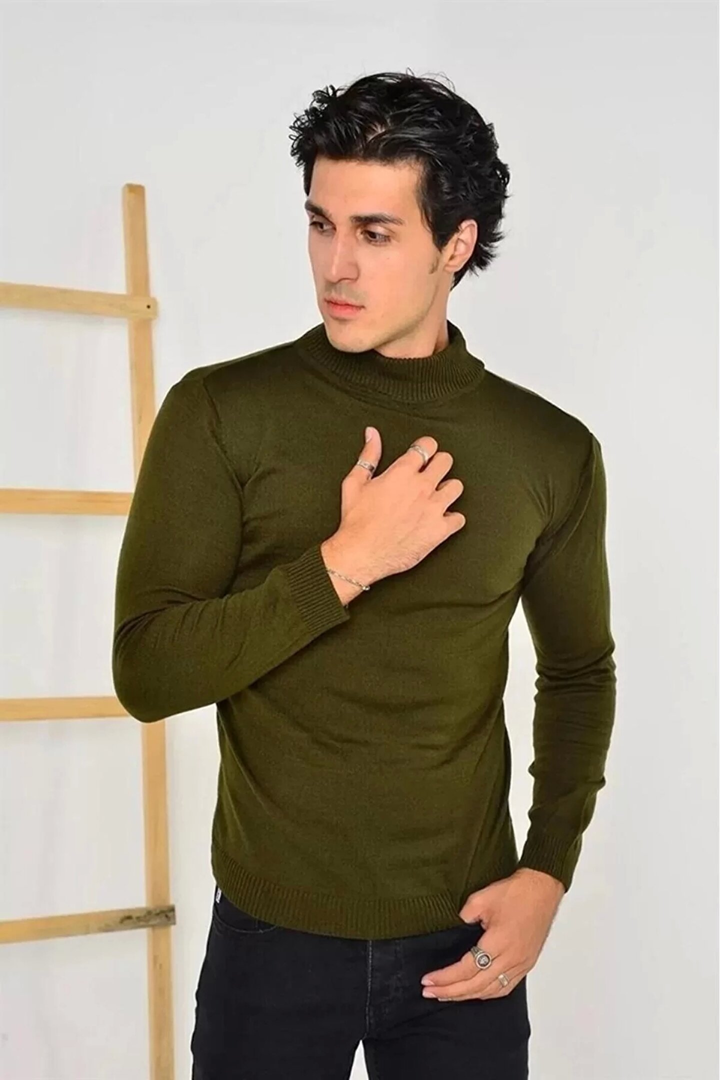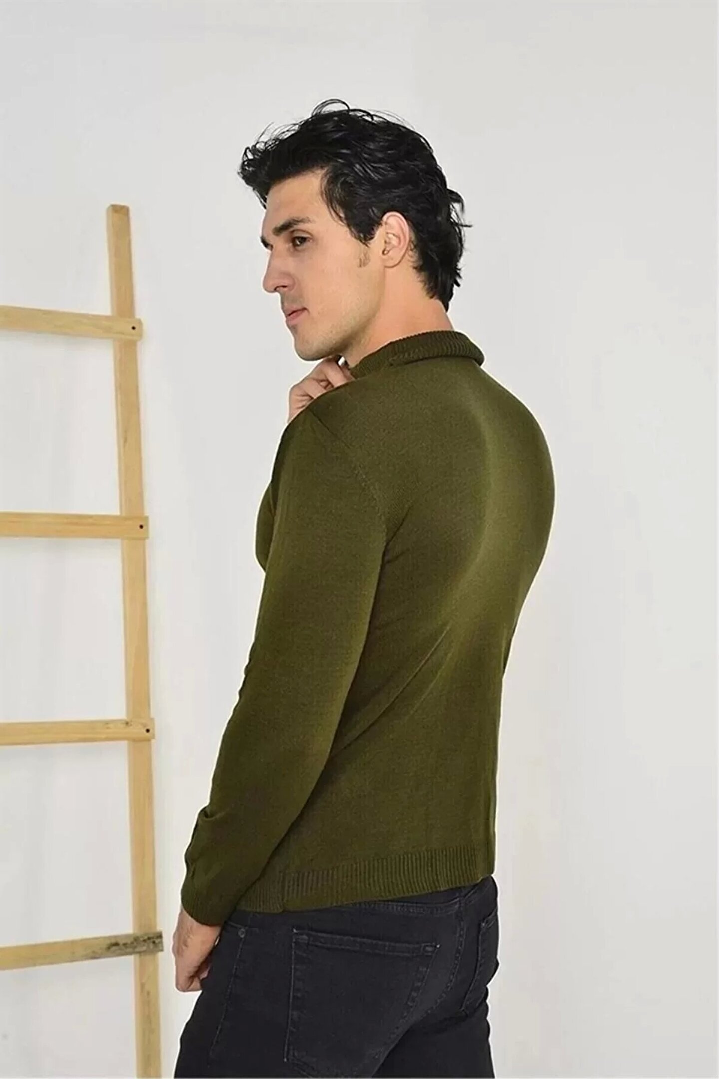 Erkek Tam Balıkçı Yaka Düz Renk Kazak - Yeşil